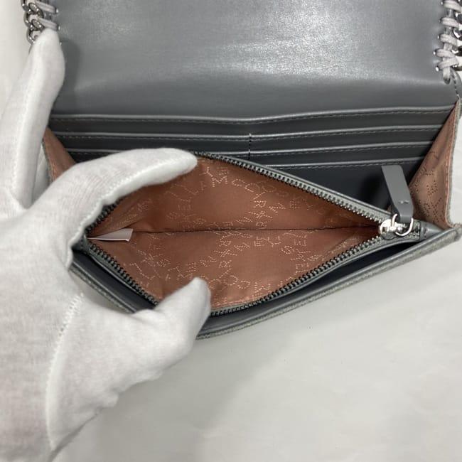 ステラマッカートニー 二つ折り 長財布 ec-22873 グレー ファラベラ 430999 W9132 SP20 美品 財布 PVC Sランク STELLA McCARTNEY チェーン シルバー金具 フラップ ホック シンプル レディース ロング ウォレット 箱付き 定番 人気 上品 ブランド 本物 鑑定済み