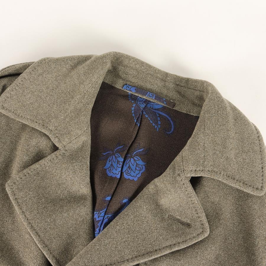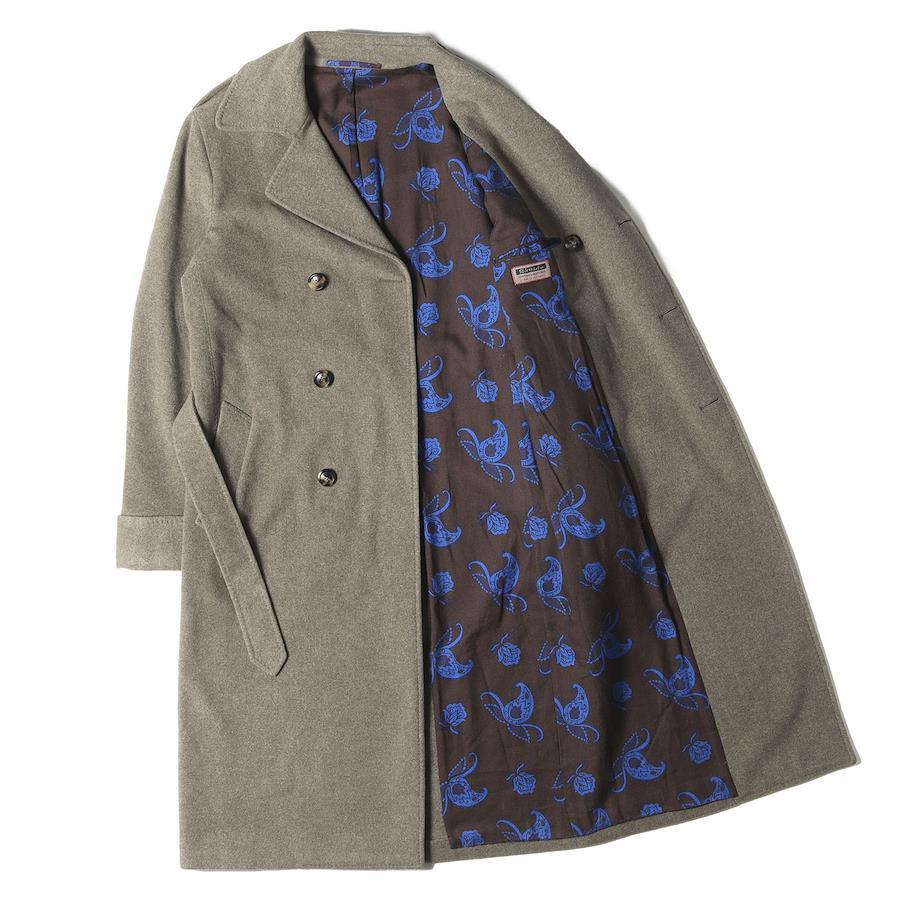 | 商品説明 | ・柔らかく滑らかな肌触りのウールモッサ生地 ・フロントダブルブレスト ・ペイズリー柄総裏地 ・スリーブターンアップ仕様 ・センターベント ・ウエストベルトあり |