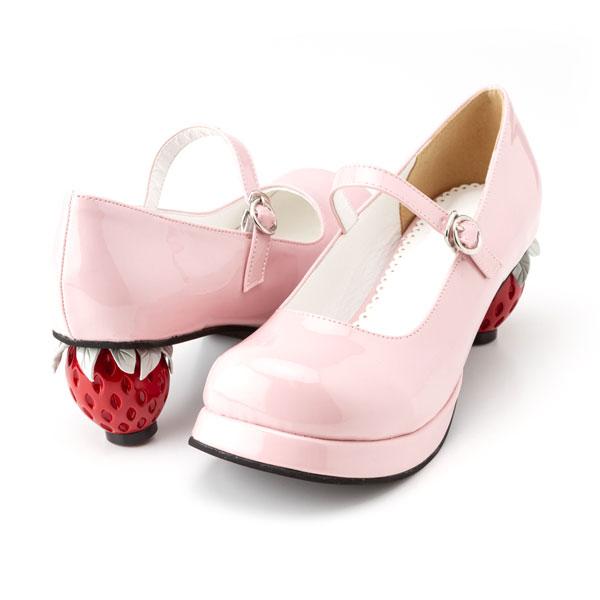 いちごヒールロリータパンプスのご紹介。【デザイン】つるんとした甘そうないちごヒールが可愛いパンプスが、デザインが新しくなってカムバック!今回もいちごの色味にこだわりました♪完全オリジナル染めの色と配色になっています。いちごもヒールが目立つように、今回はヒールの色味を配色にデザインしました。アッパー部分の素材も、皆様のご要望をお聞きし、マットなスムース素材と、テカリのあるエナメルでご用意。ぱかぱかしないよう、ベルト付きデザイン。ボタンではなくひっかけ仕様のバックルになっています。ストーム付きで比較的高低差が少ないです。軽い履き心地で、足底にクッションも入っているので、ふわふわとした歩き心地です。丸いトゥがつま先は締め付け感がなく、ゆったりと履いていただけます。【素材】形を保ってくれる程よい厚みがあります。【コーディネート】あまあまゆめかわコーデにぴったりです♪前から見るとシンプルなデザインなので、コーディネートに取り入れやすい可愛いポイントとパンプスです。《生産国》中国