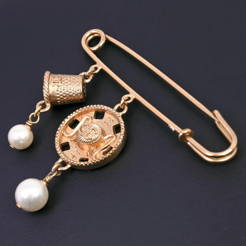 [Super Sale 10% Off] Chanel Coco Mark Brooch, Gold Plated with Faux Pearl, Approx. 18.4g, Women's [Pre-owned]