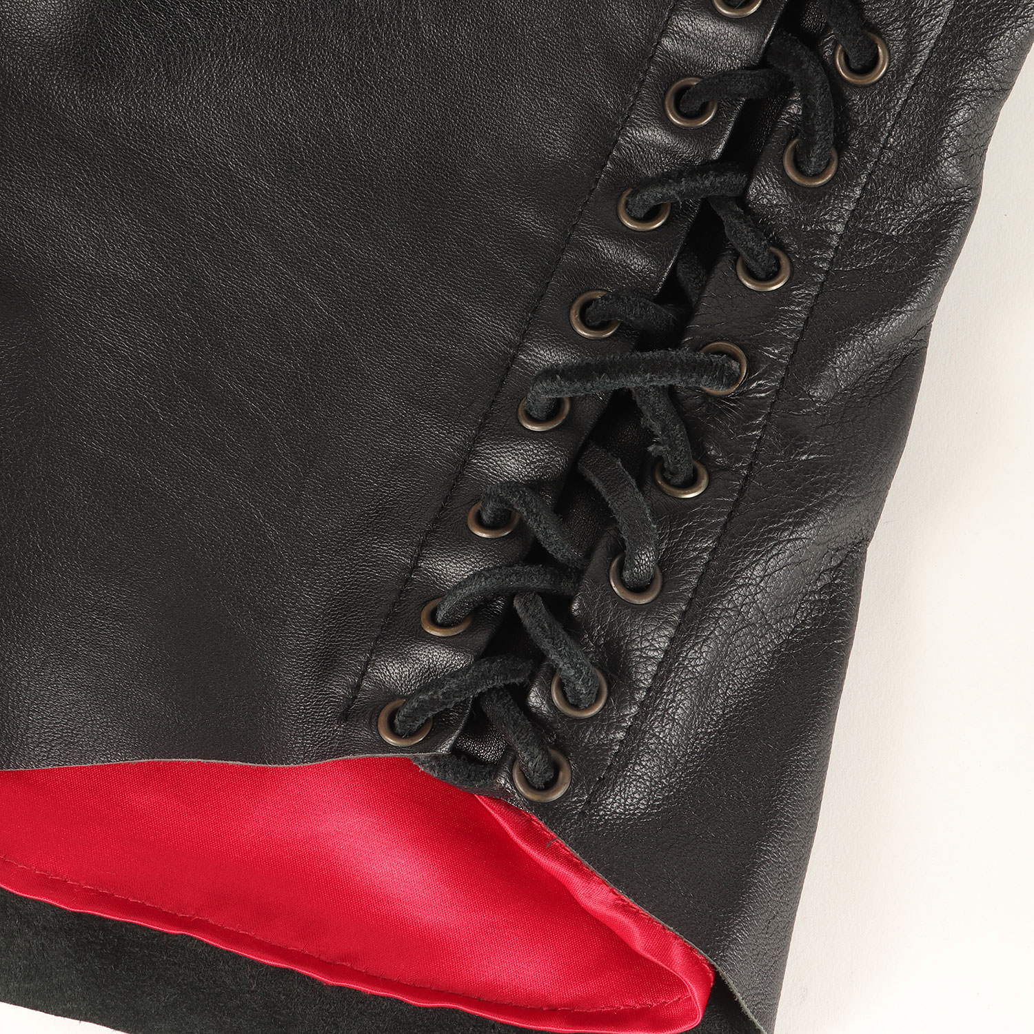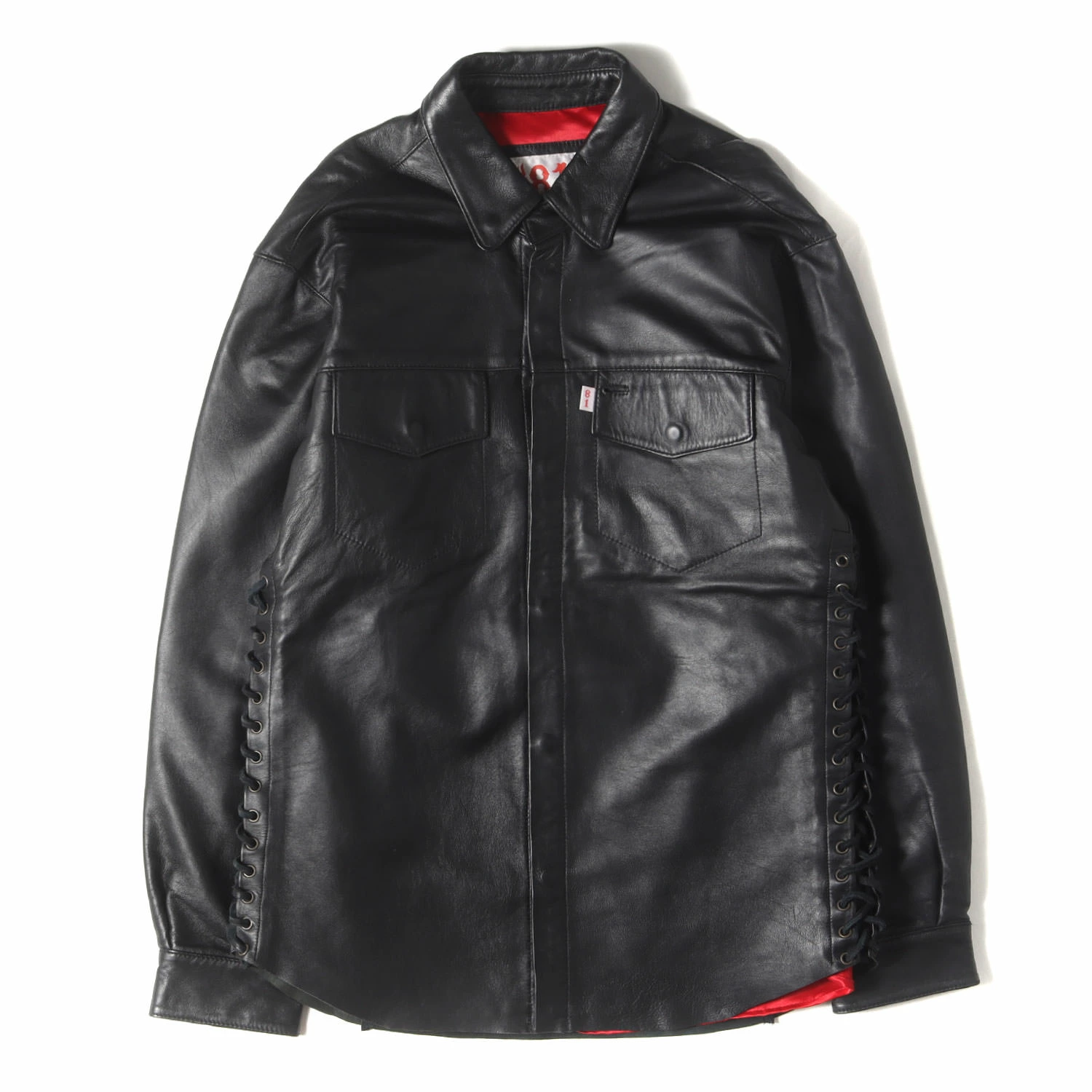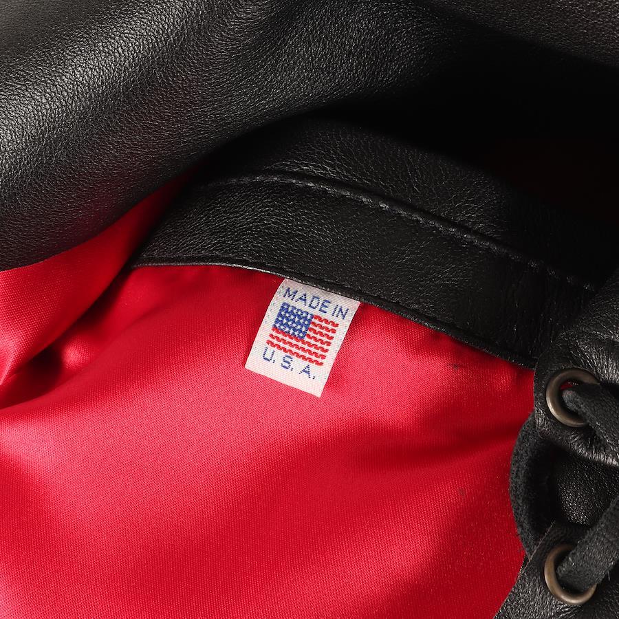 | 商品説明 | ・アメリカのバイカーブランド ・表地 シープスキンレザー ・裏地 サテン生地 ・スナップボタン ・サイド レースアップ仕様 ・襟 スナップダウン ・USA製 |
