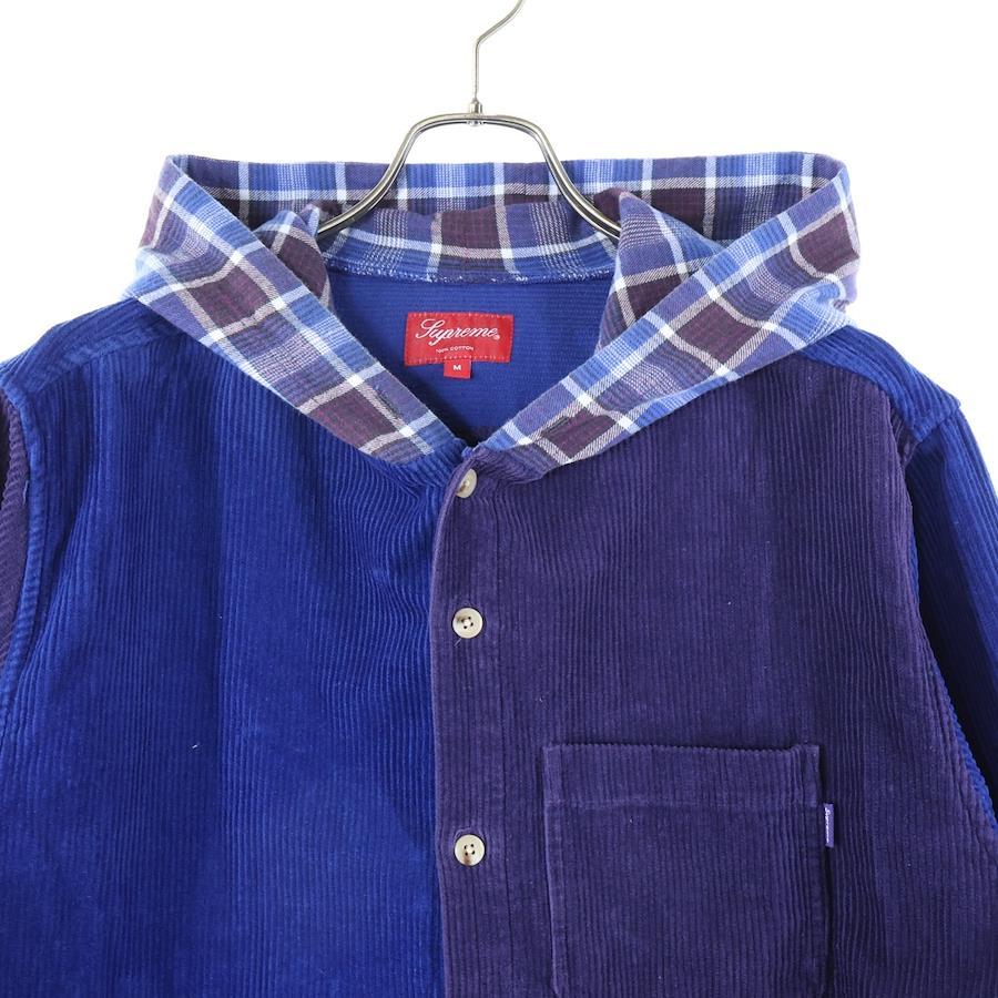 [モデル]18AW Hooded Color Blocked Corduroy Shirt フーデッド カラー ブロックド コーデュロイ 長袖シャツ ブルー/パープル