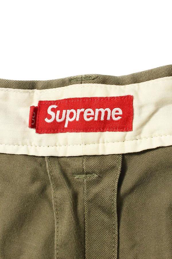 ランク:B (使用感がある商品)状態備考:全体的に擦れ、若干の毛羽立ちがありますブランド:シュプリームサイズ:30インチ色:カーキ実寸:ウエスト幅40.5cm 股上29.5cm ワタリ幅34.5cm 股下72.5cm 裾幅22cm重さ:-素材:コットン付属品:なしその他特徴:ボタンフライデザインです管理番号:10829-250919-0174