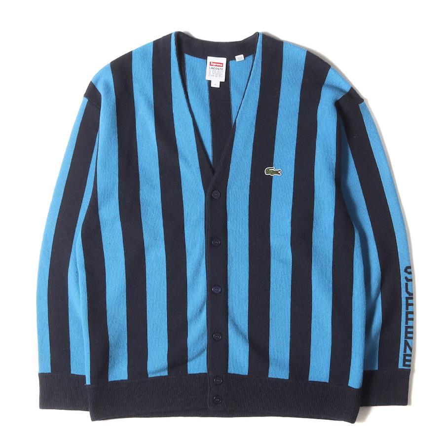 Supreme Cardigan, Navy Blue, Size M | LACOSTE L!VE Striped Knit Cardigan | Sweater | Collaboration [Men's] [Pre-owned] [K4616]