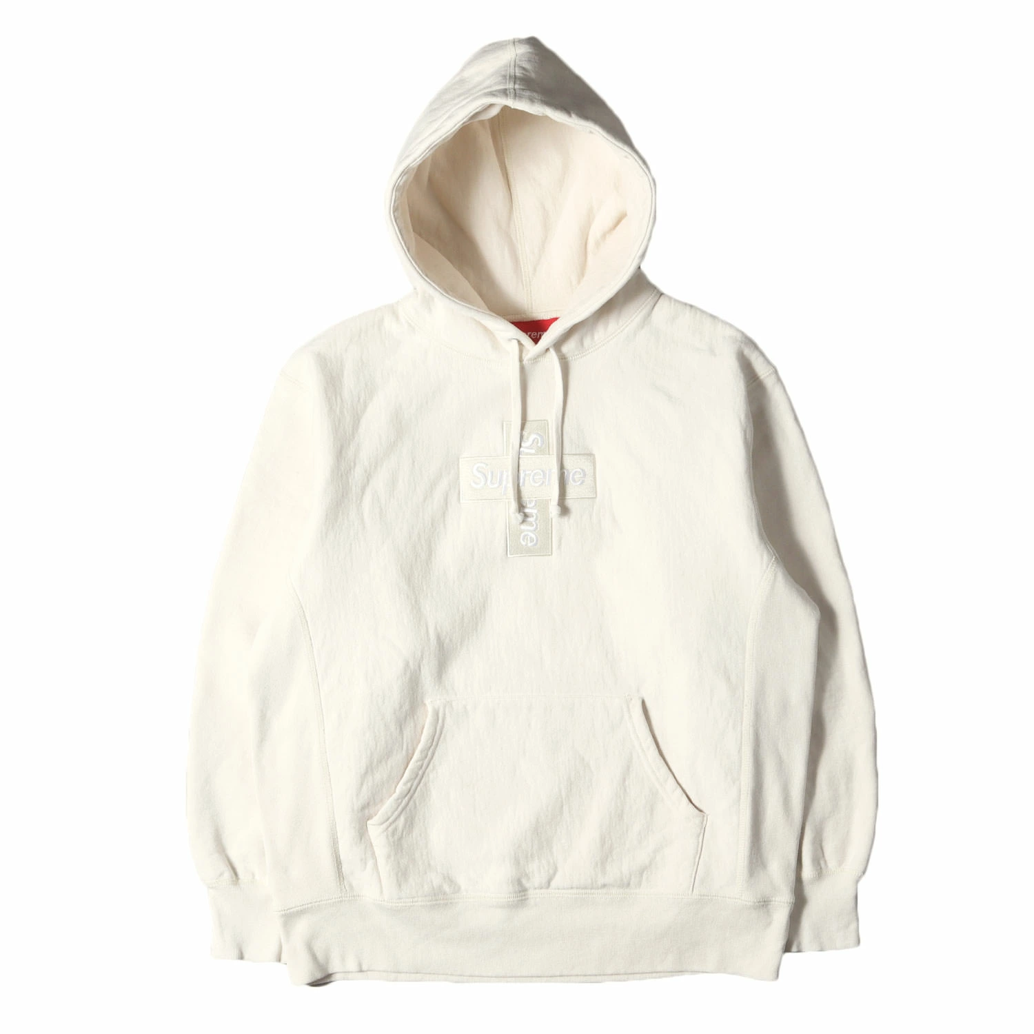 Supreme Cross Box Logo Hooded Sweatshirt, Size Small, 20AW, Natural, Pullover Top, Men's, Pre-owned, K4619