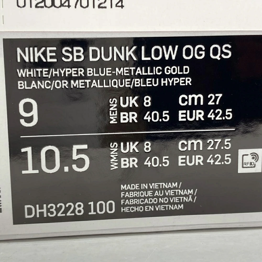 Supreme DH3228-100 x Nike SB Dunk Low OG QS Gold Stars White Hyper Blue. Dunk Low Gold Stars White Hyper Blue low-top sneakers, blue, size 27cm. [New/Unused] Men's [Pre-owned]
