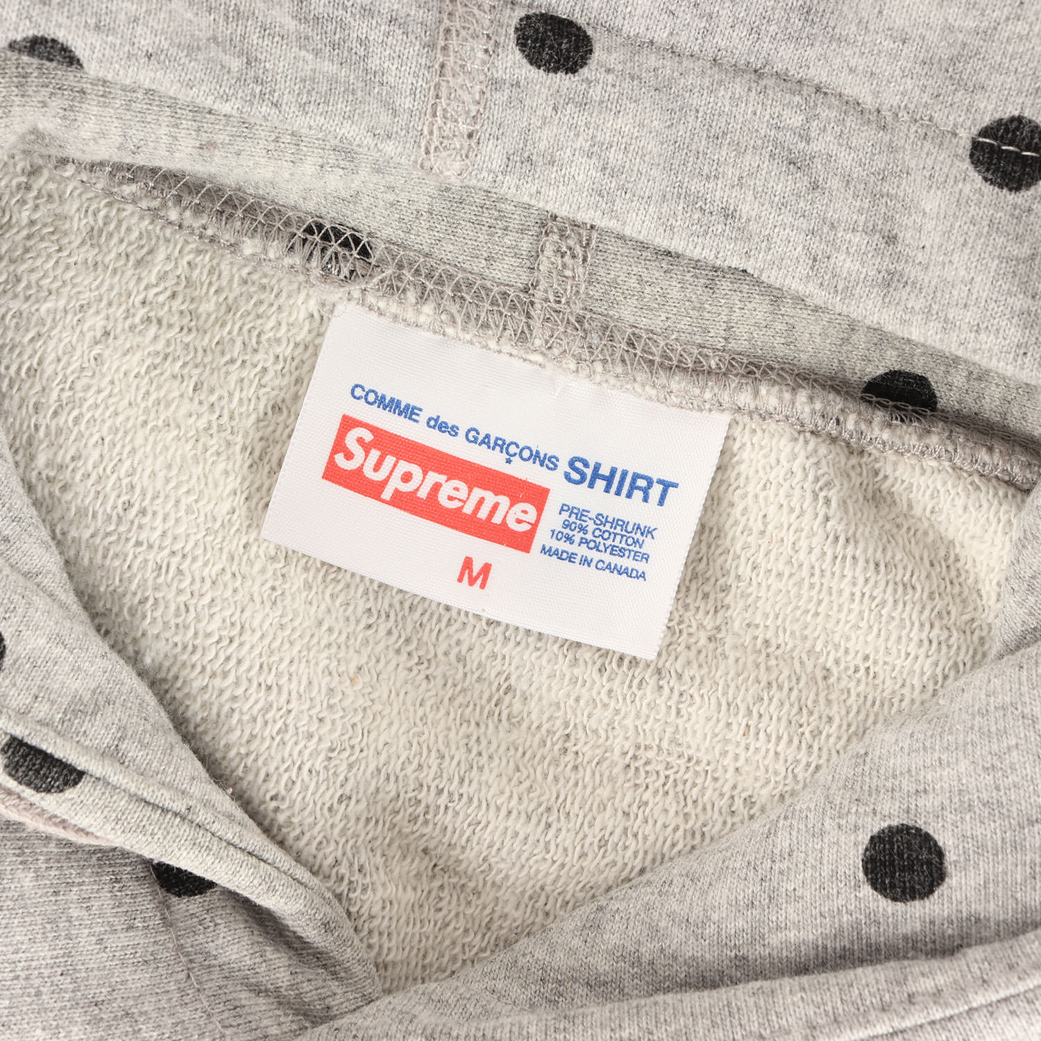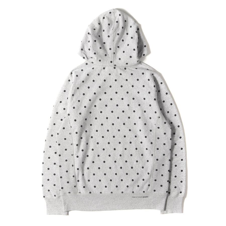 | 商品説明 | リリースの度に高いに人気を誇る“COMME des GARCONS SHIRTS(コムデギャルソン シャツ)”とのコラボシリーズになります。フロントにシリーズ定番の反転BOXロゴをあしらい、全面にドット柄プリントをデザインしたリバースウィーブスウェットパーカーです。こちらは人気の高い希少な初代モデルになります。 |