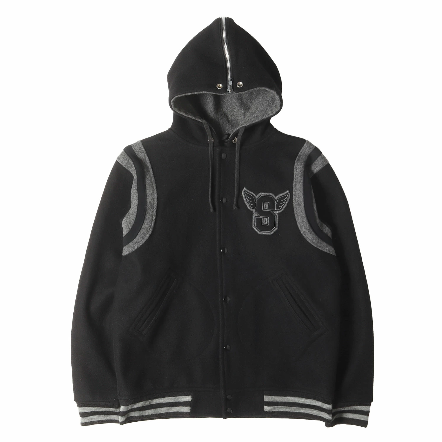 | 商品説明 | セータータイプのフードをあしらった、メルトンウール素材のスタジャンです。胸にはウイングロゴワッペンがデザインされております。 |