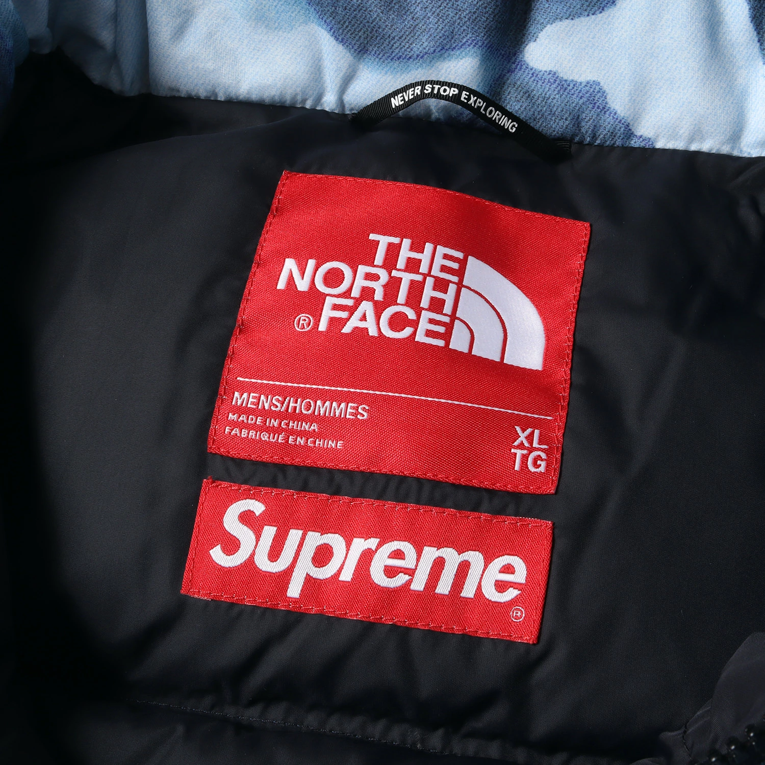 | 正式タイトル | Bleached Denim Print Nuptse Jacket |