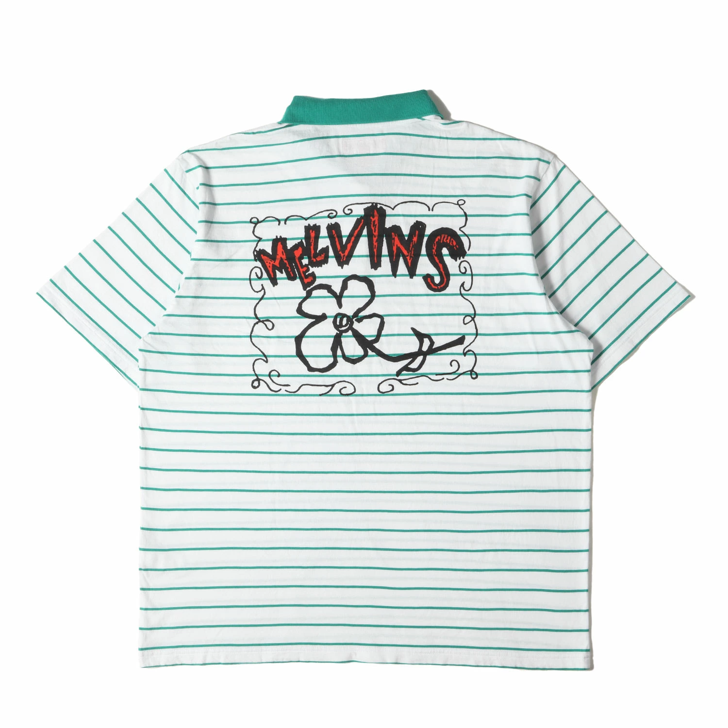 アメリカのロックバンド“Melvins”とのコラボシリーズです。バックにアルバムアートをあしらったコットンカットソー生地のボーダーポロシャツになります。