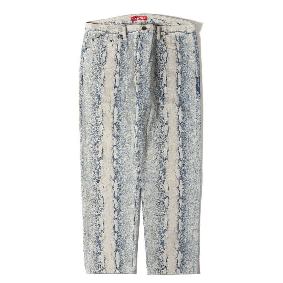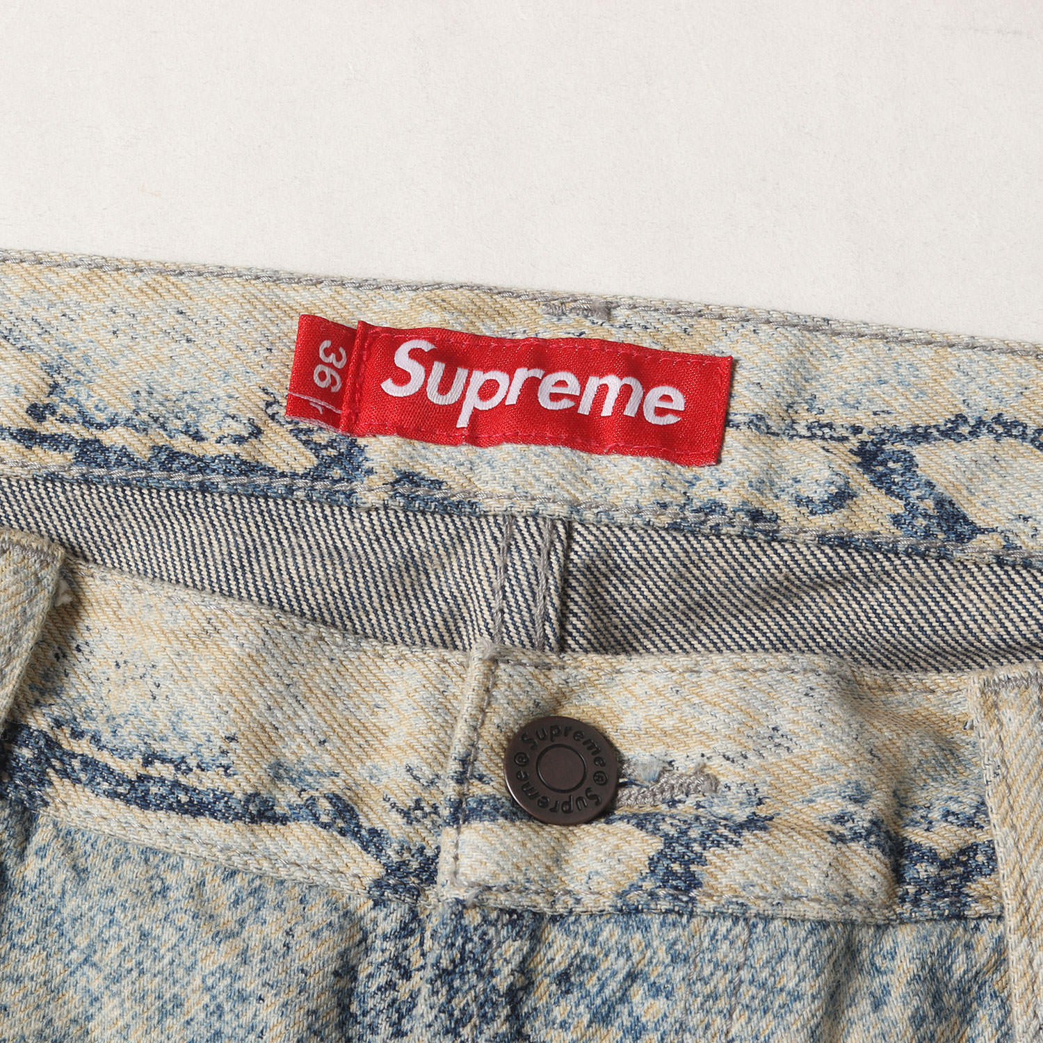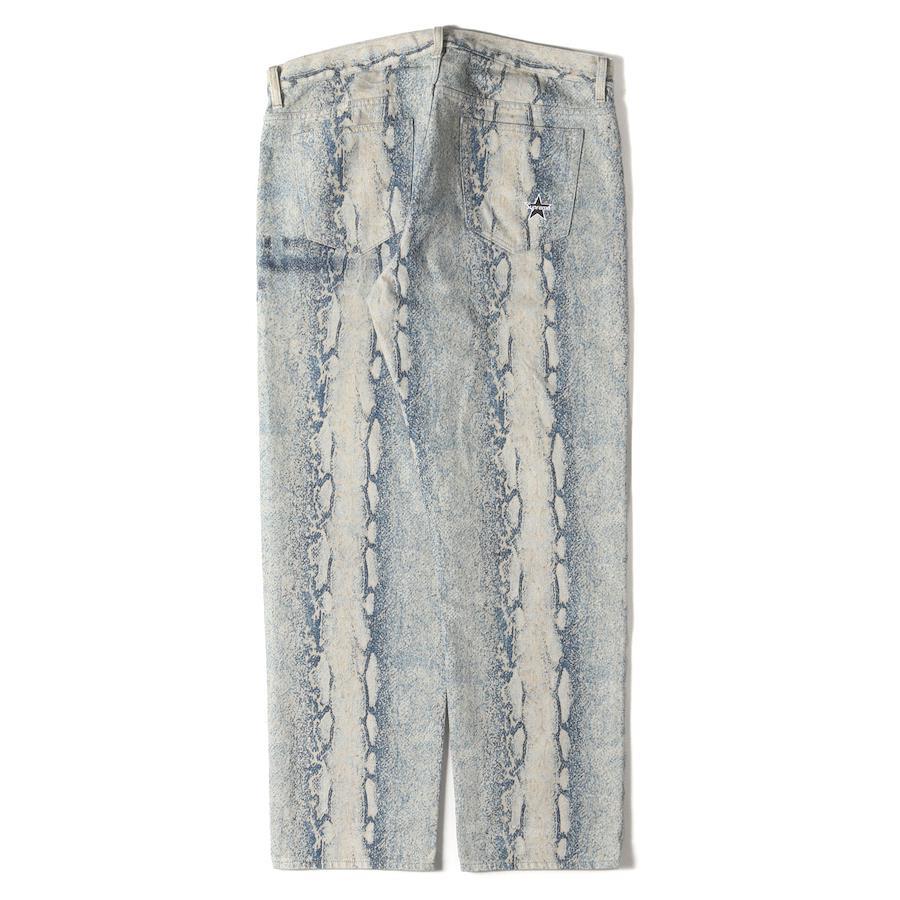 | 商品説明 | ヴィンテージ加工を施したレギュラーシルエットのボタンフライデニムパンツです。こちらは全面にスネークスキン柄プリントがデザインされております。 |