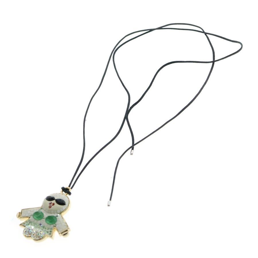 [モデル]人形 モチーフ ラインストーン パヴェクリスタル ペンダント ネックレス ゴールド/ホワイト