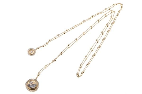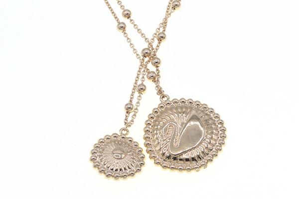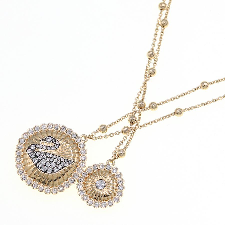 スワロフスキーネックレスゴールドメタルクリスタル2連ダブルチェーン中古ペンダントアクセサリーロングネックレスレディースSWAROVSKI