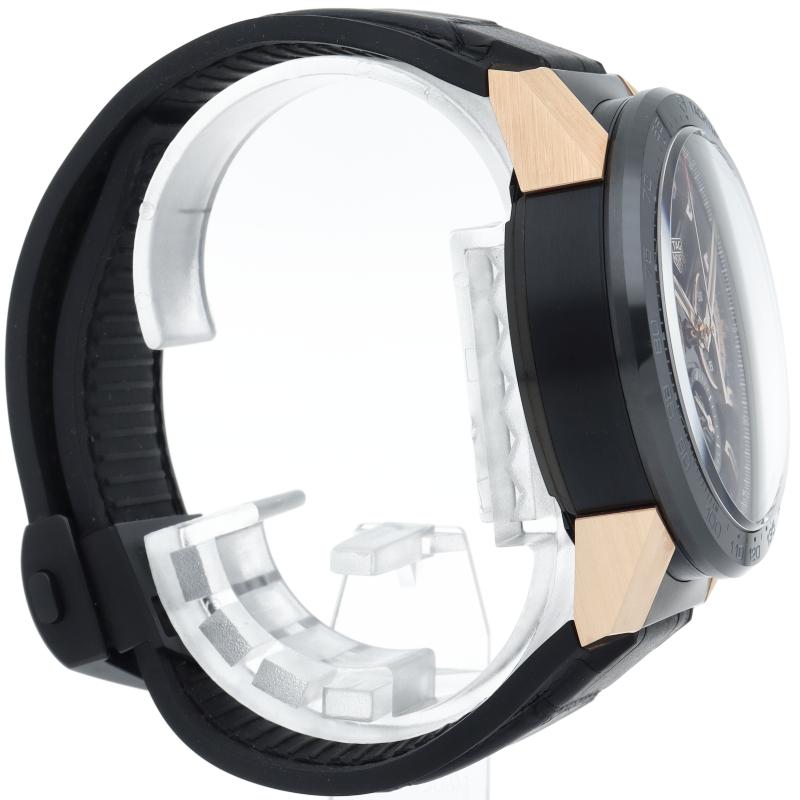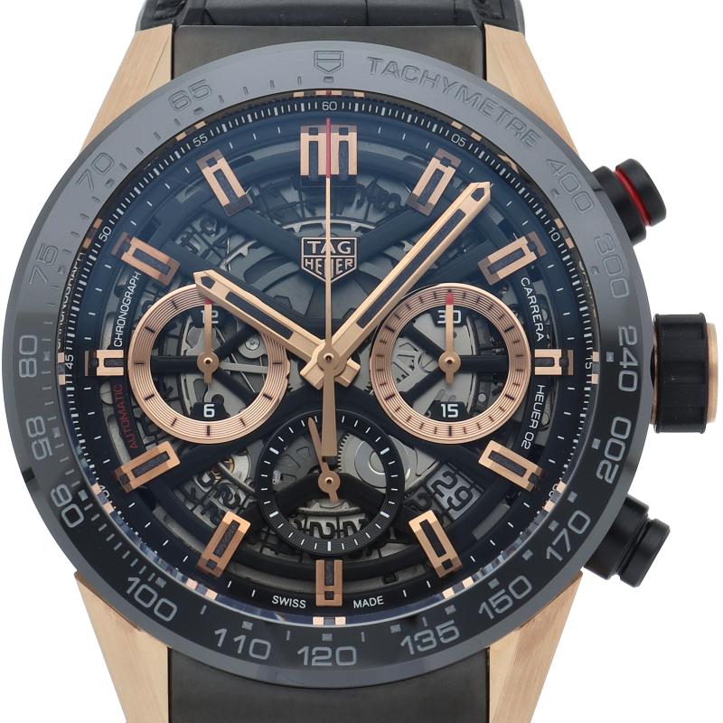 商品説明:アリゲーター&ラバー製ブラックストラップを備えた、ブラックスティールとローズゴールドが美しいタグ・ホイヤー カレラ ホイヤー02。43mm自動巻クロノグラフに搭載された80時間パワーリザーブ機能付きムーブメントは、サファイアケースバックから眺めることができます。