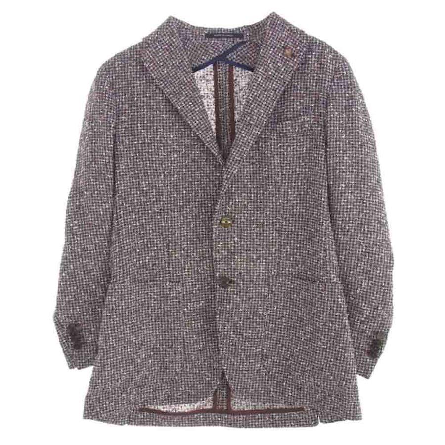 ブラウン系【モデル】イタリア製 リネン 2B ツイード テーラード ジャケット サイズ44