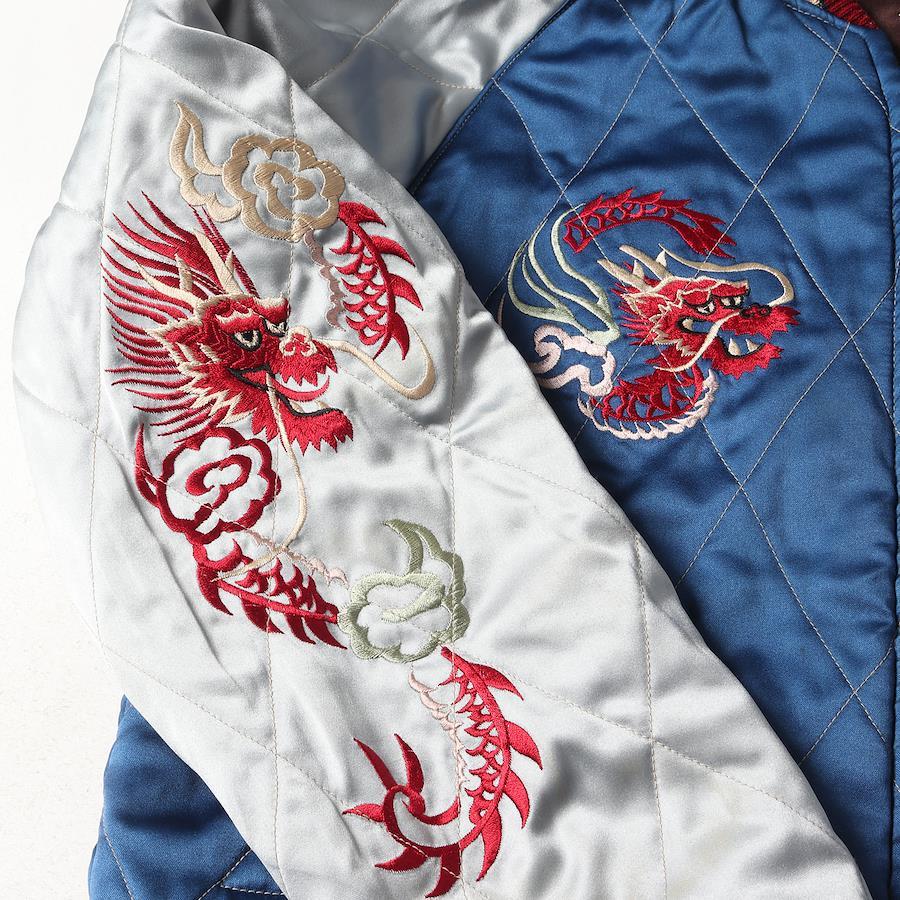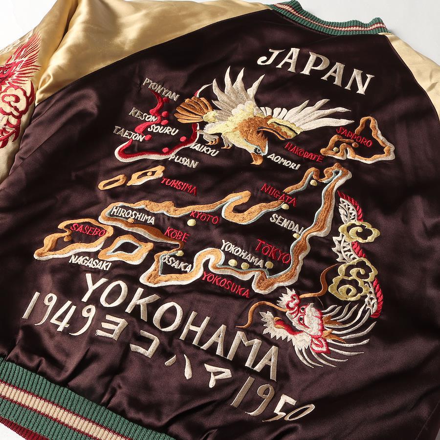 | 商品説明 | ・M品番 ・“虎×鷲&JAPANマップ”モデル ・サテン×キルティングサテンのリバーシブル仕様 ・総刺繍 ・東洋エンタープライズブランド |