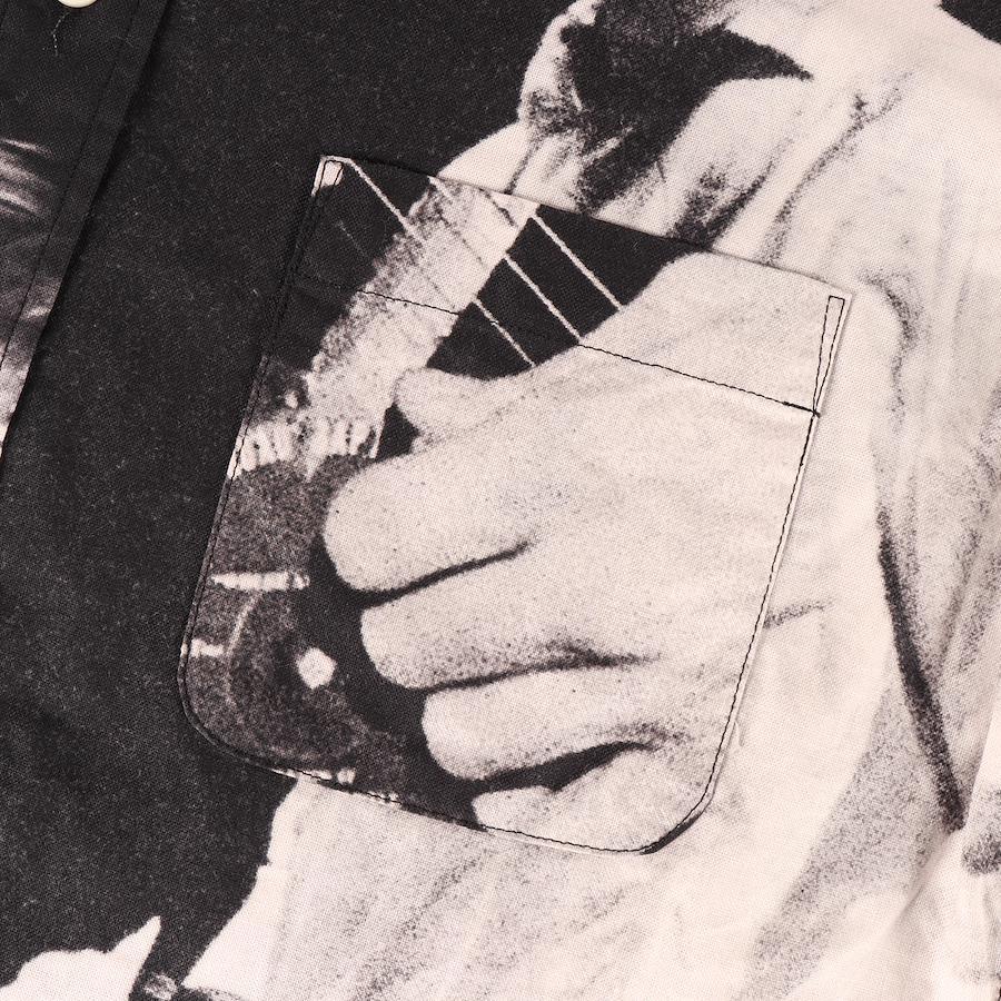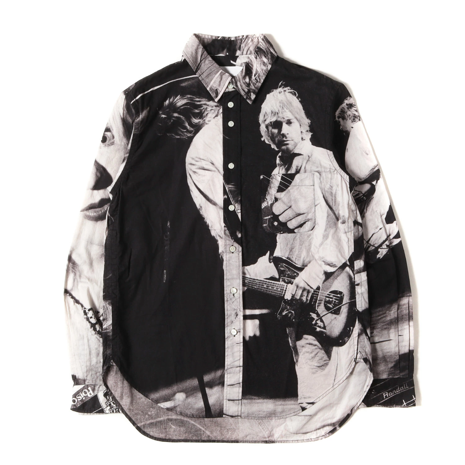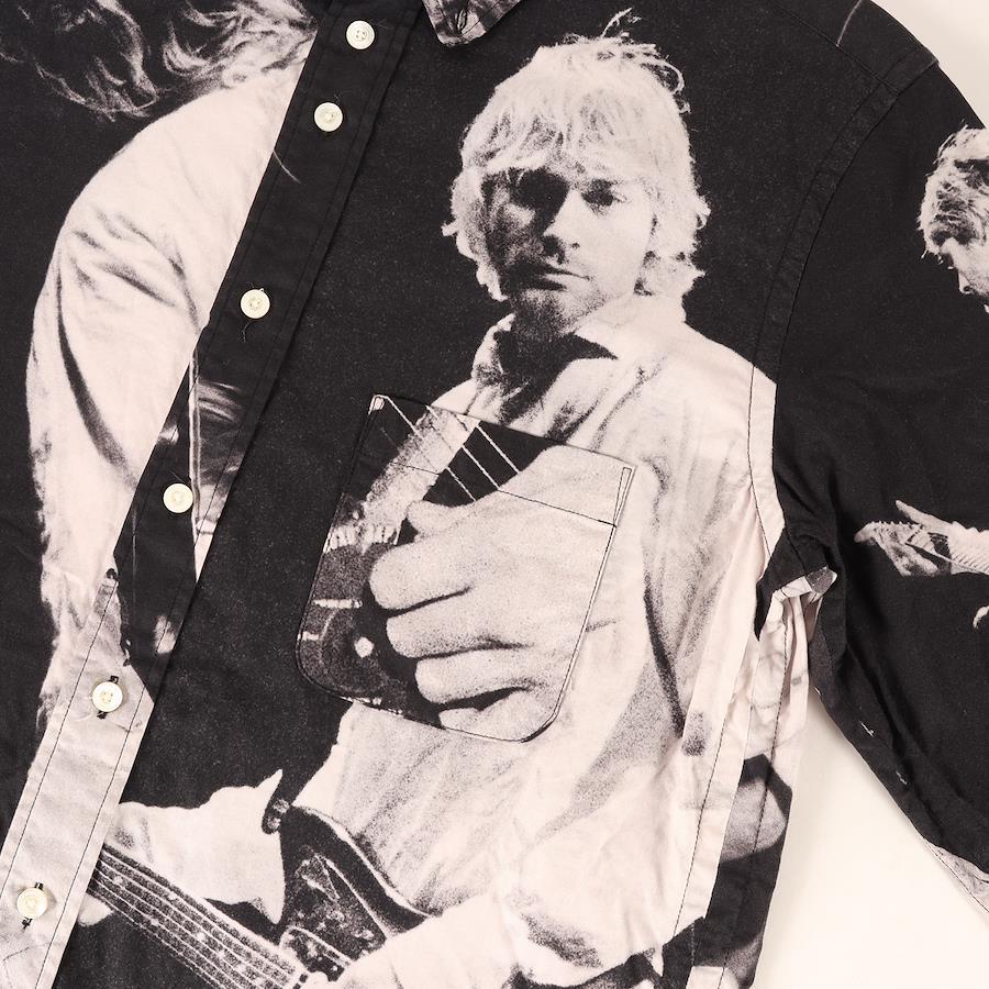 - 写真家“Charles Peterson”のフォトを使用したコラボモデルのボタンダウンシャツです。全面に“NIRVANA(ニルヴァーナ)”のヴォーカル“カート・コバーン”フォトがデザインされています。