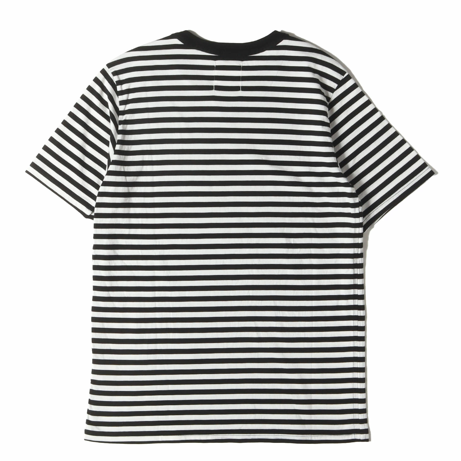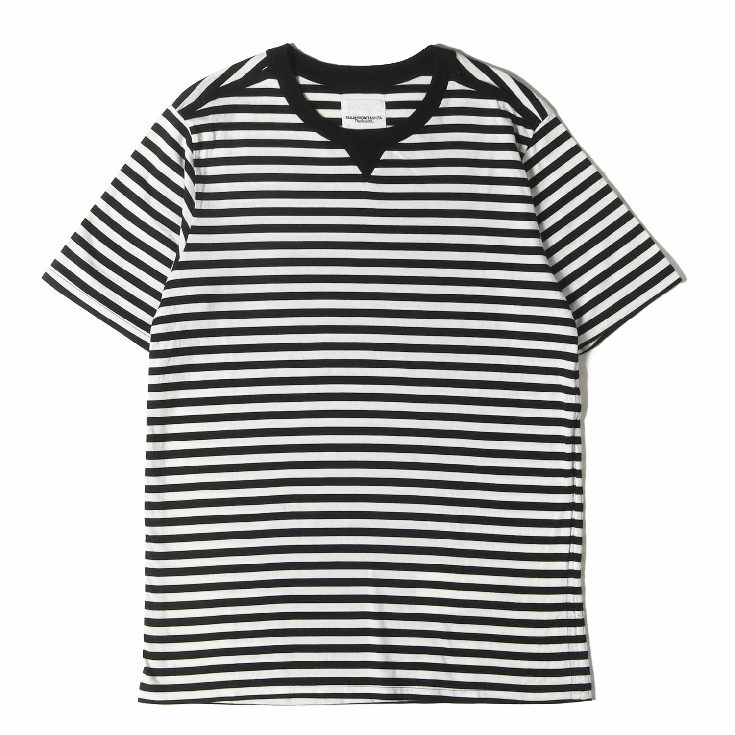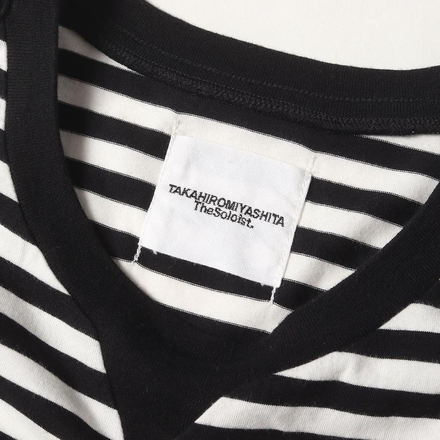 TAKAHIROMIYASHITA The Soloist. T-shirt, black and white, size 50 | Borderline, front V crew neck tee (s-striped tee) | Men's top, short sleeves, cut and sewn, pre-owned, item number K4618