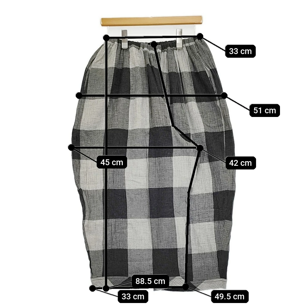 TANG Top Gauze Check Washed Pants, Size 38 (2315406), Wide Easy Pants, Gray/Black, Women's, SS25, Used, 5-1011M, Regular Price: ¥13,750