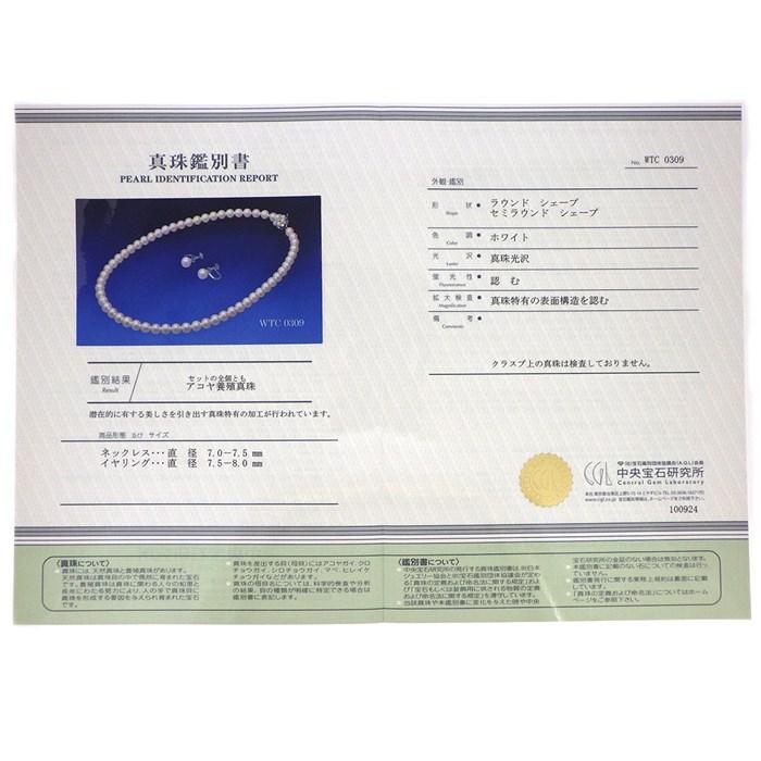 TASAKI 2-piece set: Necklace with Akoya pearls, 7.0-7.5mm, SV925 / Earrings with Akoya pearls, 7.5-8.0mm, K14WG [Pre-owned]