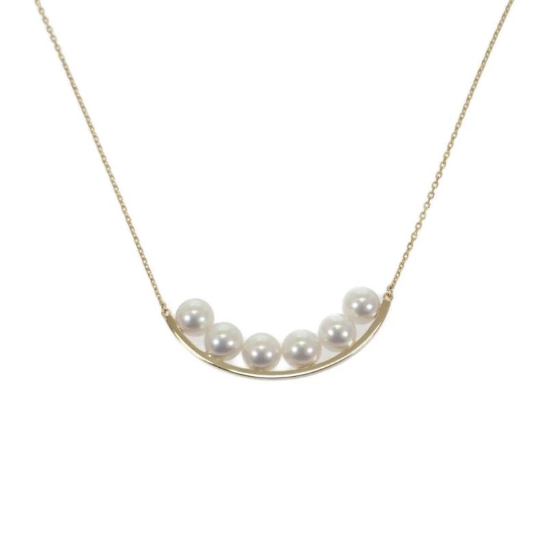 美しい曲線を描くイエローゴールドのバーに、6ポイントの上質なアコヤパールをバランスよく並べられておりモダンで彫刻的な印象を生み出します。