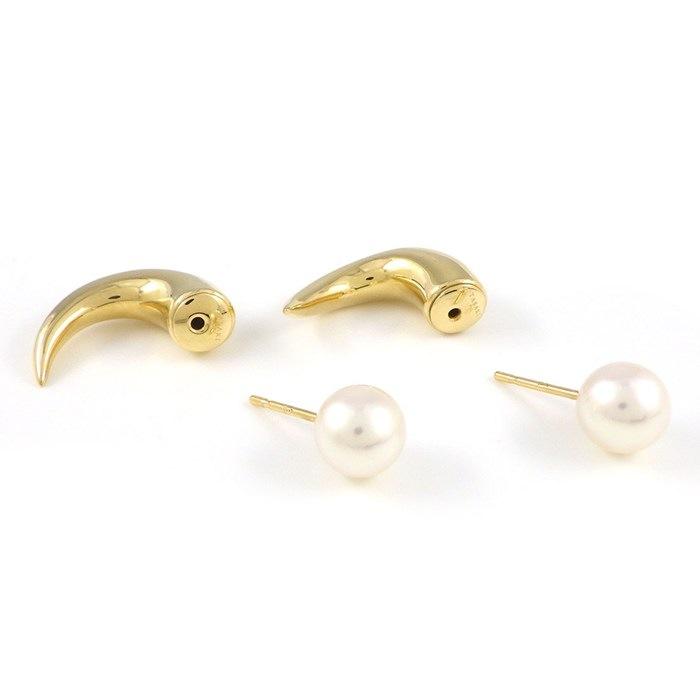TASAKI Danger Horn Earrings E-3658-18KYG 2-Way Refined Rebellion Akoya Pearl 7.5mm Beads in 18K Yellow Gold [Pre-owned]