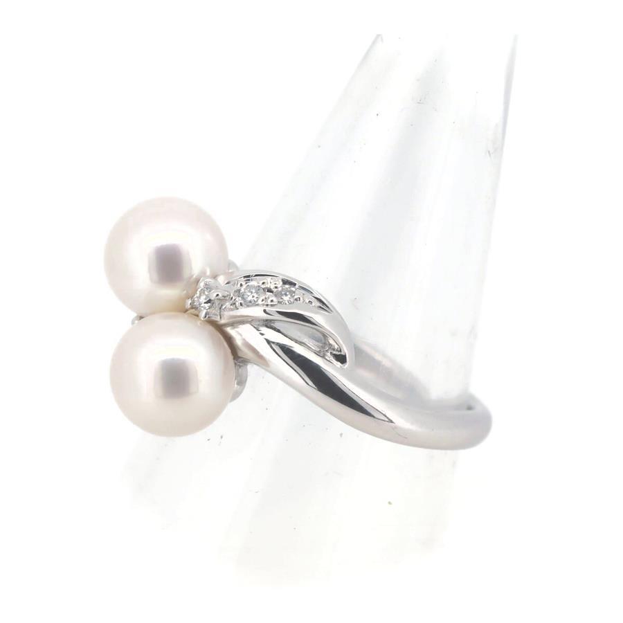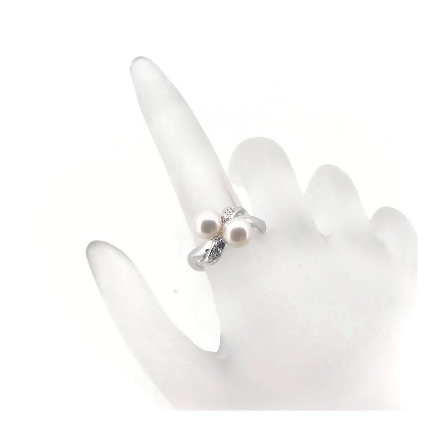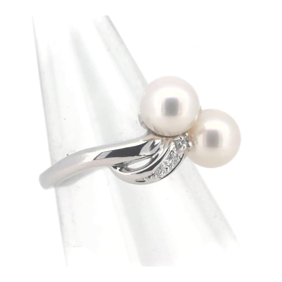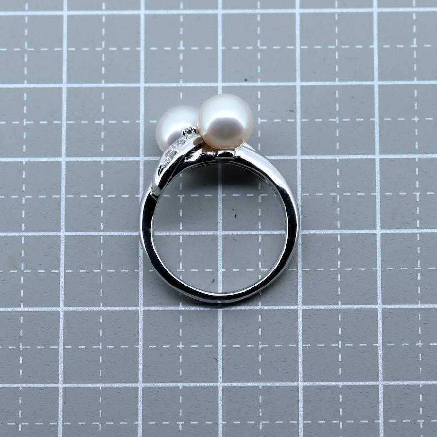 Tasaki Pearl Diamond Ring, 7mm Pearl, 0.06ct, Size 11, Pt900 (Platinum)