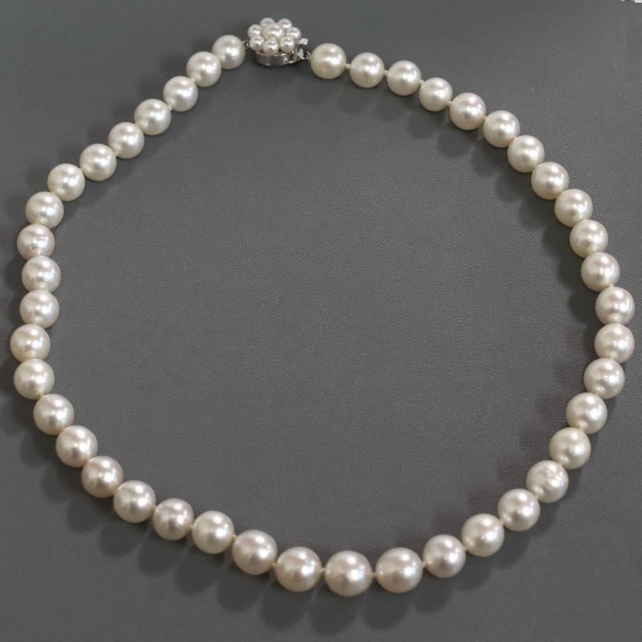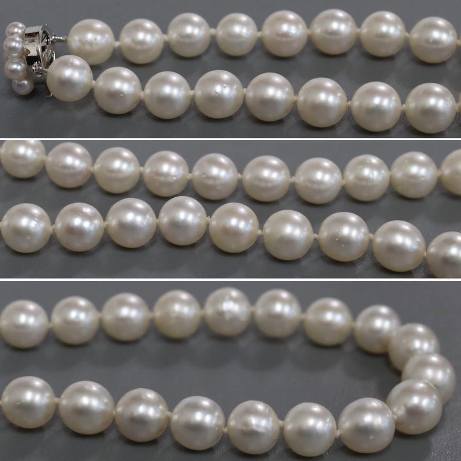 タサキの南洋パールネックレスの中古品です。パールは8.9-10.4mmと大き目で存在感があります。パールはクリーム系のホワイト色で、ややえくぼがあり肉眼でも確認できます。金具にはわずかに小傷があります。+---+---+---+---+---+。{状態}AB{素材}トップ南洋パールチェーンK14WG{サイズ}トップパール約8.9-10.4mm。チェーン長約44cm。{その他}59.5g。{付属品}なし(サービス箱をお付けします){お問合せ商品番号}25106039+---+---+---+---+---+。