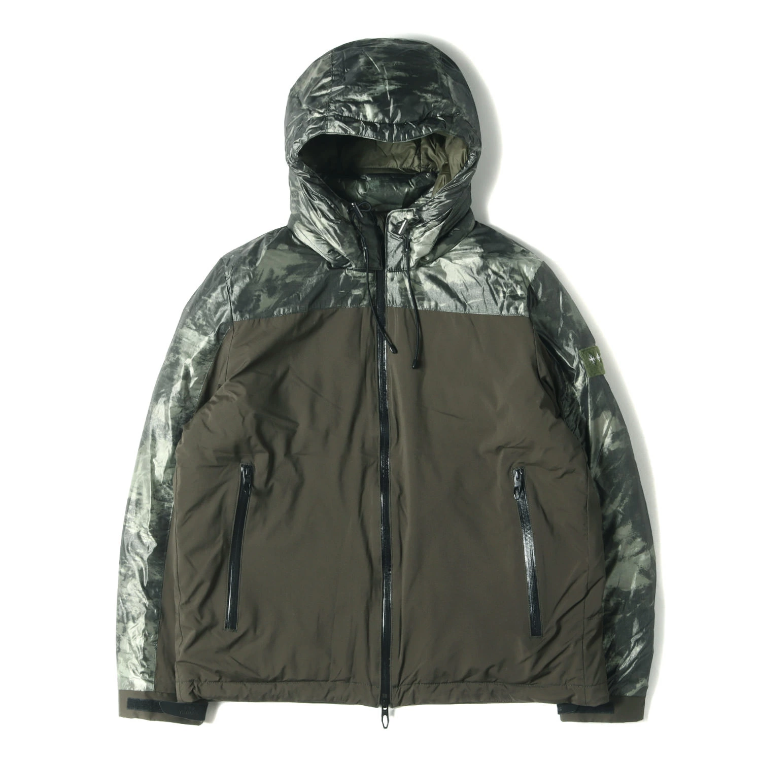 | 商品説明 | ハリ感のあるナイロン素材を使用し、上部にジオメトリックメタリック切り替えデザインがあしらわれ、取り外し可能フード、ハイネックダブルジップ仕様で仕上げられたダウンジャケット"カレーテ"です。 |