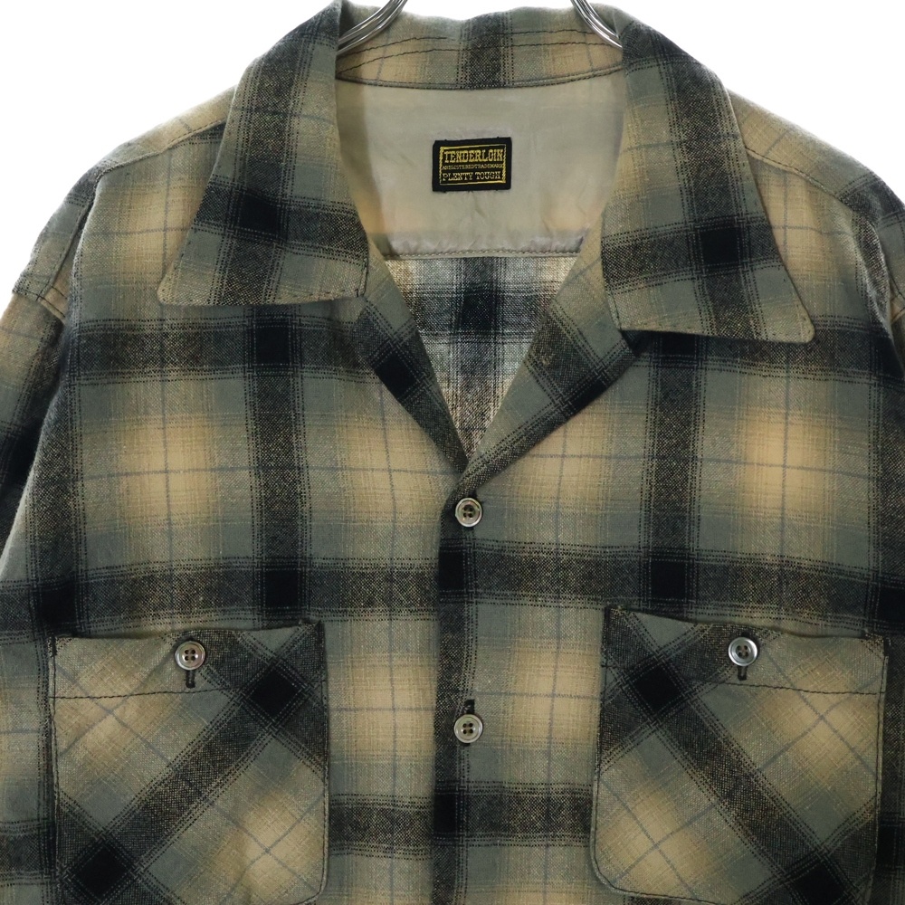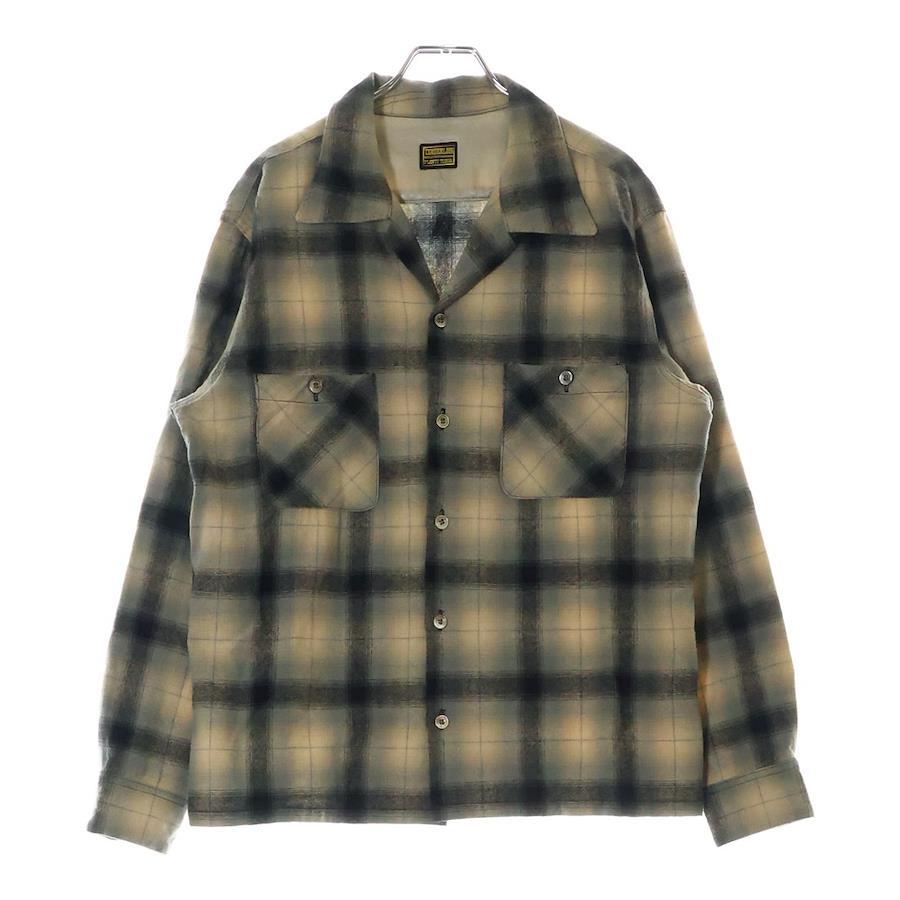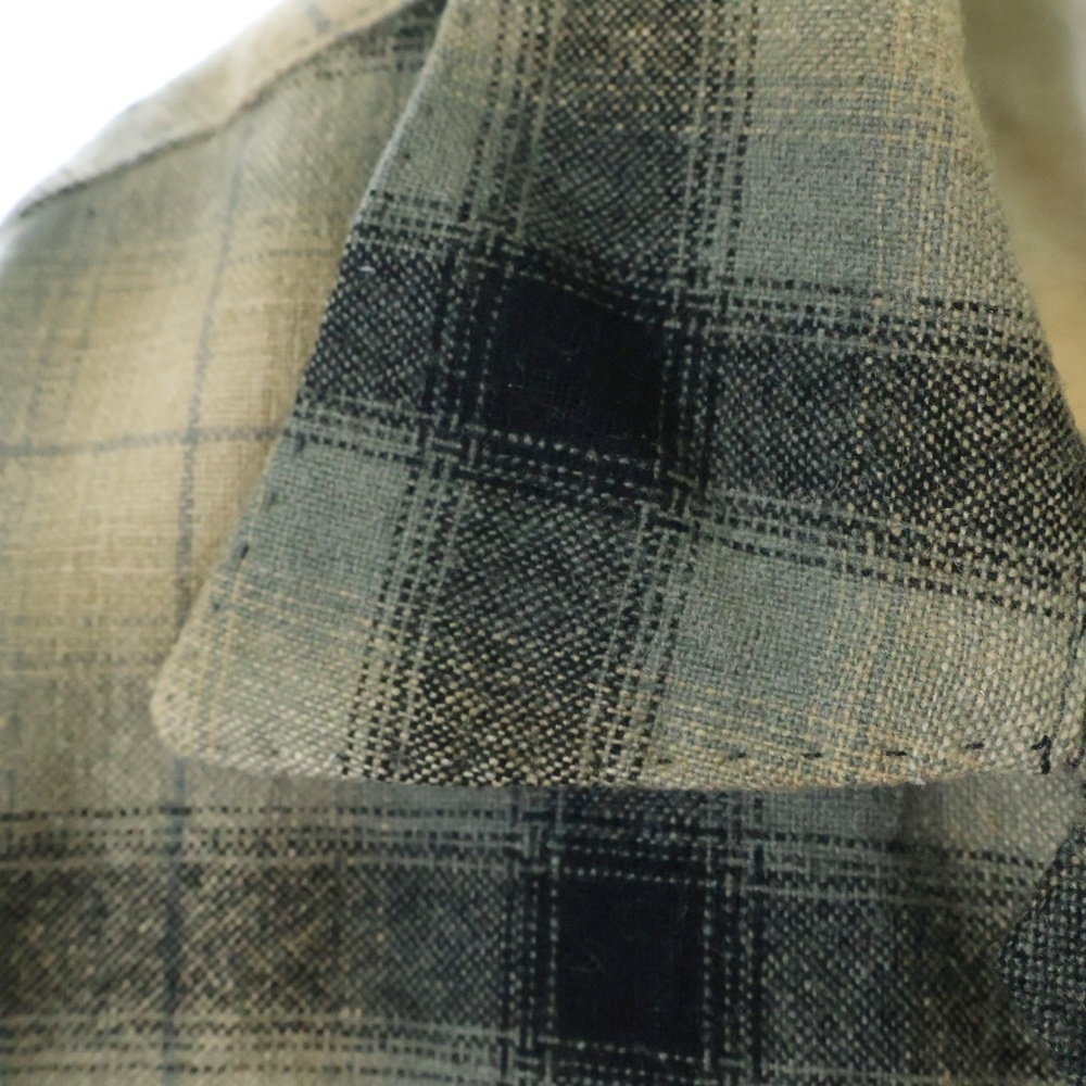 [モデル]08AW T-WOOL SHT オンブレチェック ウールナイロン オープンカラー 長袖シャツ ベージュ/ブラック