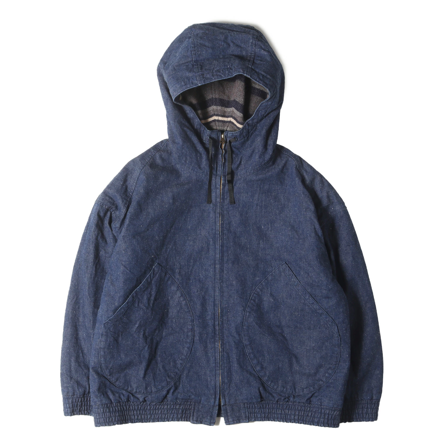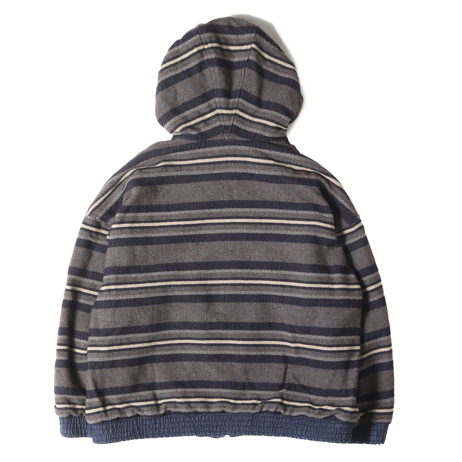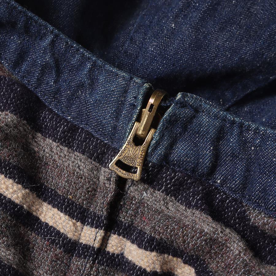 | 商品説明 | ネップ感のあるデニム生地とボーダー柄ブランケットのコンビで仕上げたリバーシブルジップジャケットです。ゆとりのあるルーズシルエットで仕上げた一枚になります。 |