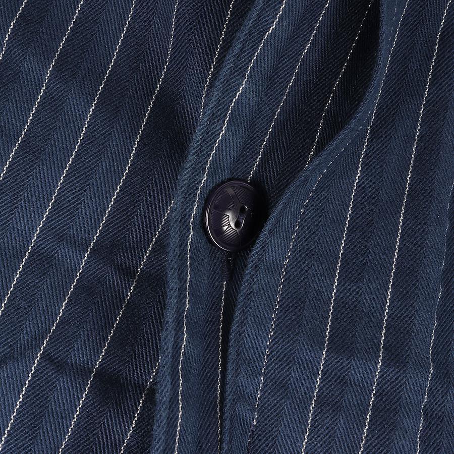| 商品説明 | ピンストライプ柄のヘリンボーンツイル生地を使用したエンジニアコートです。ゆとりのあるルーズシルエットで仕上げた一枚になります。 |
