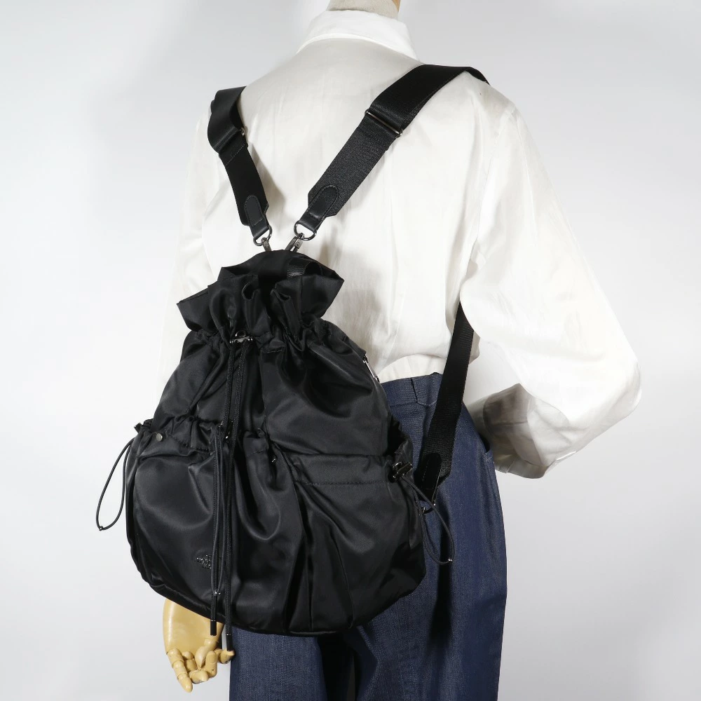 | 仕様 | 開閉式:巾着 外側:巾着式ポケット x 3 内側:ファスナーポケット x 1 バッグタイプ:斜め掛け、肩掛け、手提げ、3way、A4 |