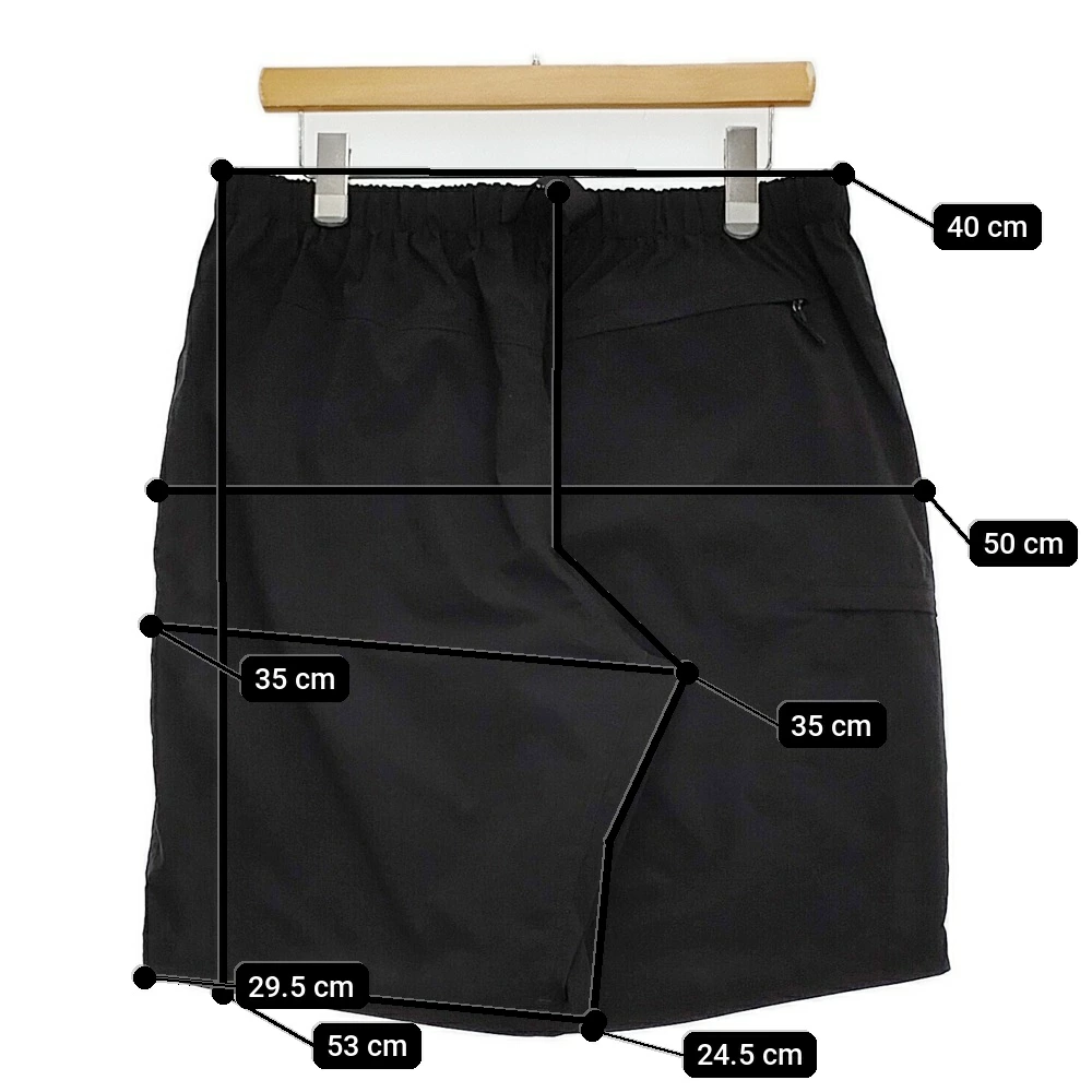 | 仕様 | フロント:ジップ ポケット:あり 透け感:なし ウエスト調整:ゴム(紐なし) 裏地:なし |