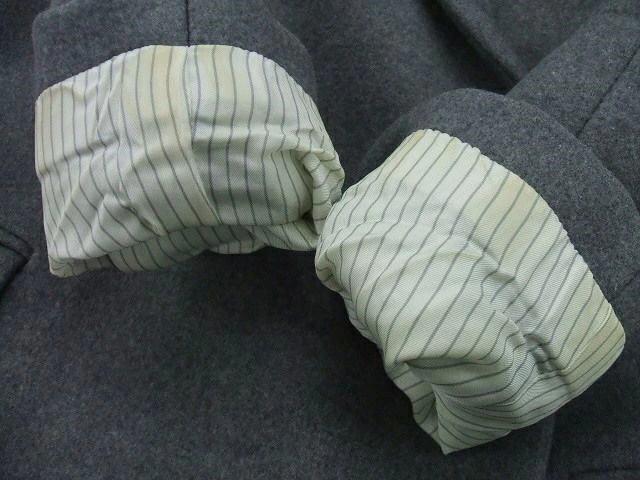 | 状態 | 【参考ランク】B 【全体の印象】 使用感が見受けられますが、使用する上で支障となるような大きなダメージではないと思います。 【細かく見ると】 ところどころに毛羽立ち、襟にうっすら汚れ、袖口裏地、本体裏地のところどころに汚れ(本体裏地にはうっすらシミも)があり、着用感がございます ※保管時にできた折りジワ、繊維付着などはご容赦下さい。 |