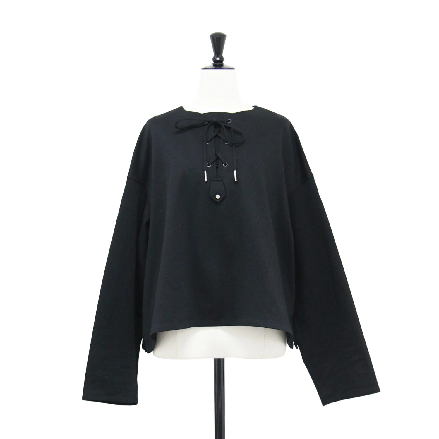 THE RERACS Edition Blouse, Black, Size: Free | Spring/Summer 2023 Lace-Up Blouse | MARIN BLOUSE | Pullover, Short Length, Long Sleeve, Cotton | Made in Japan | Women's Top, Shirt, Cut and Sewn Top [Pre-owned] [K4650]