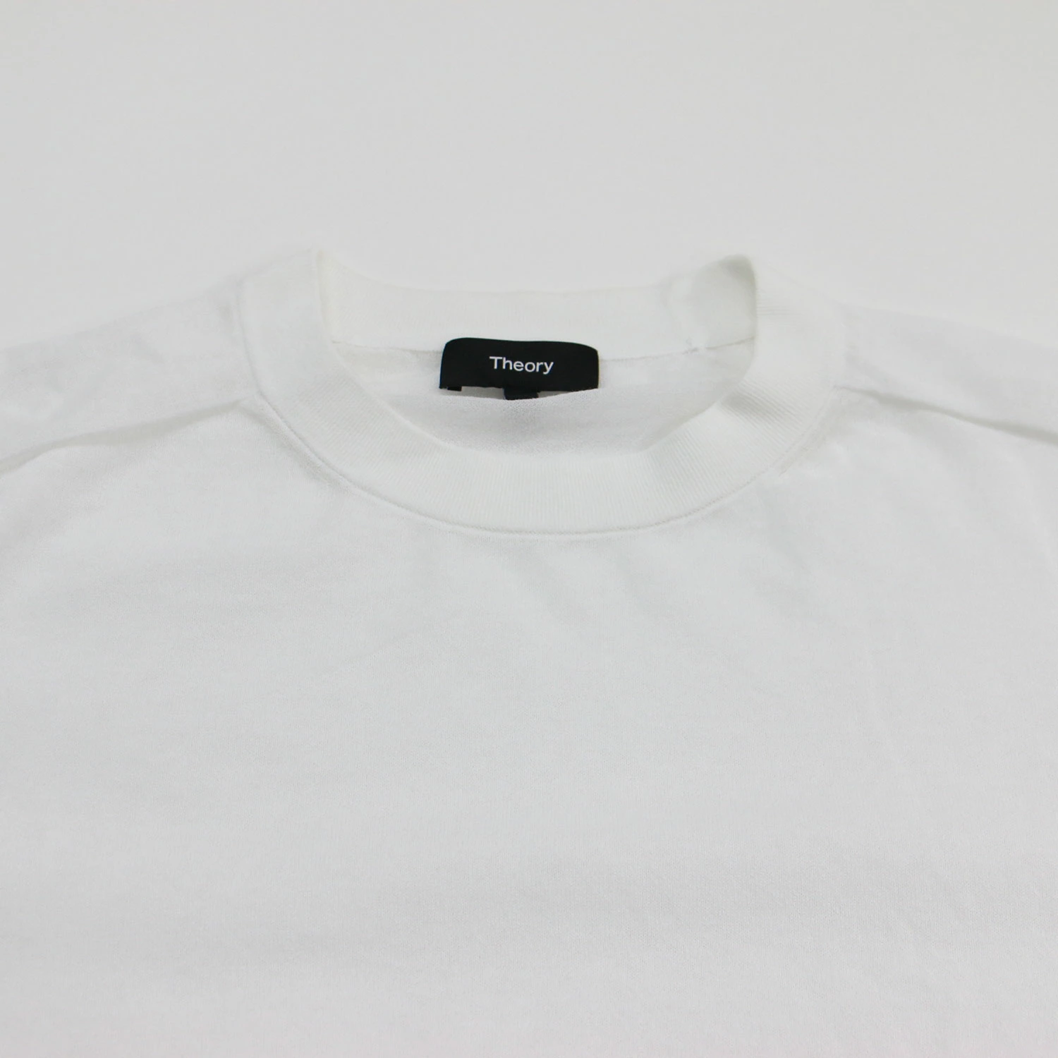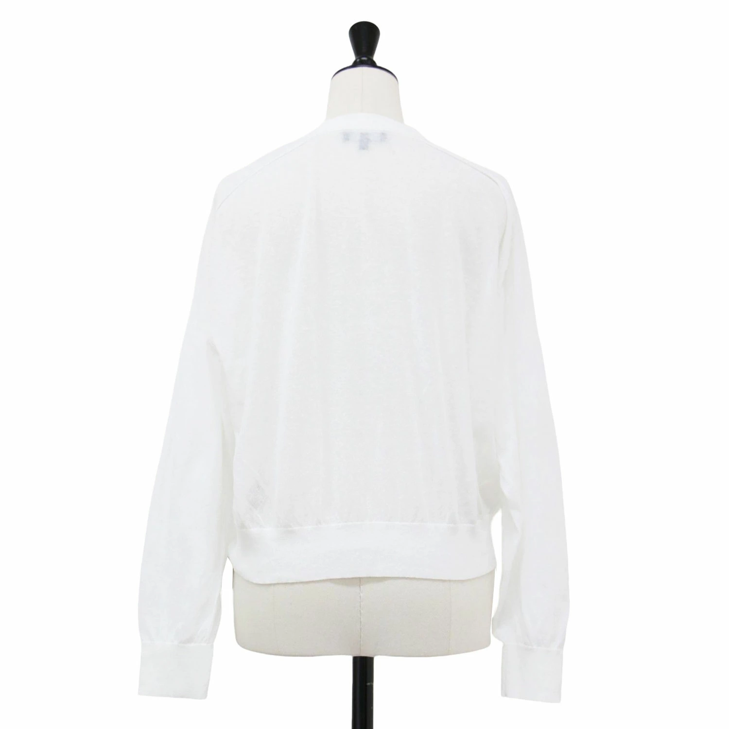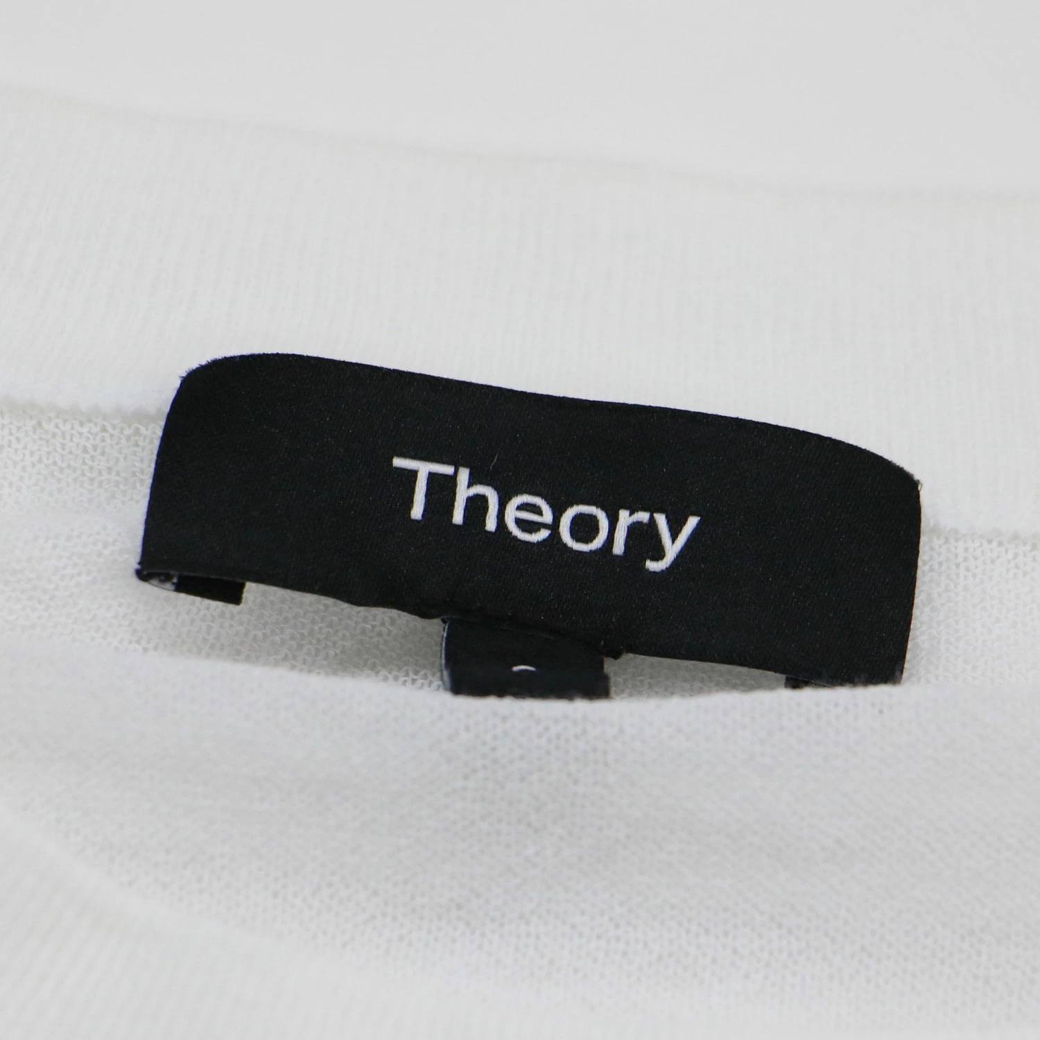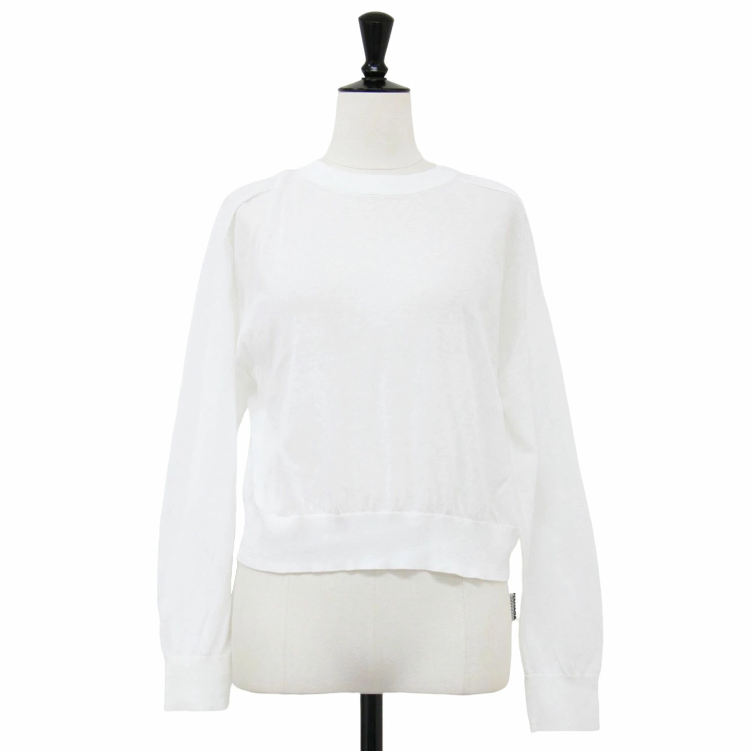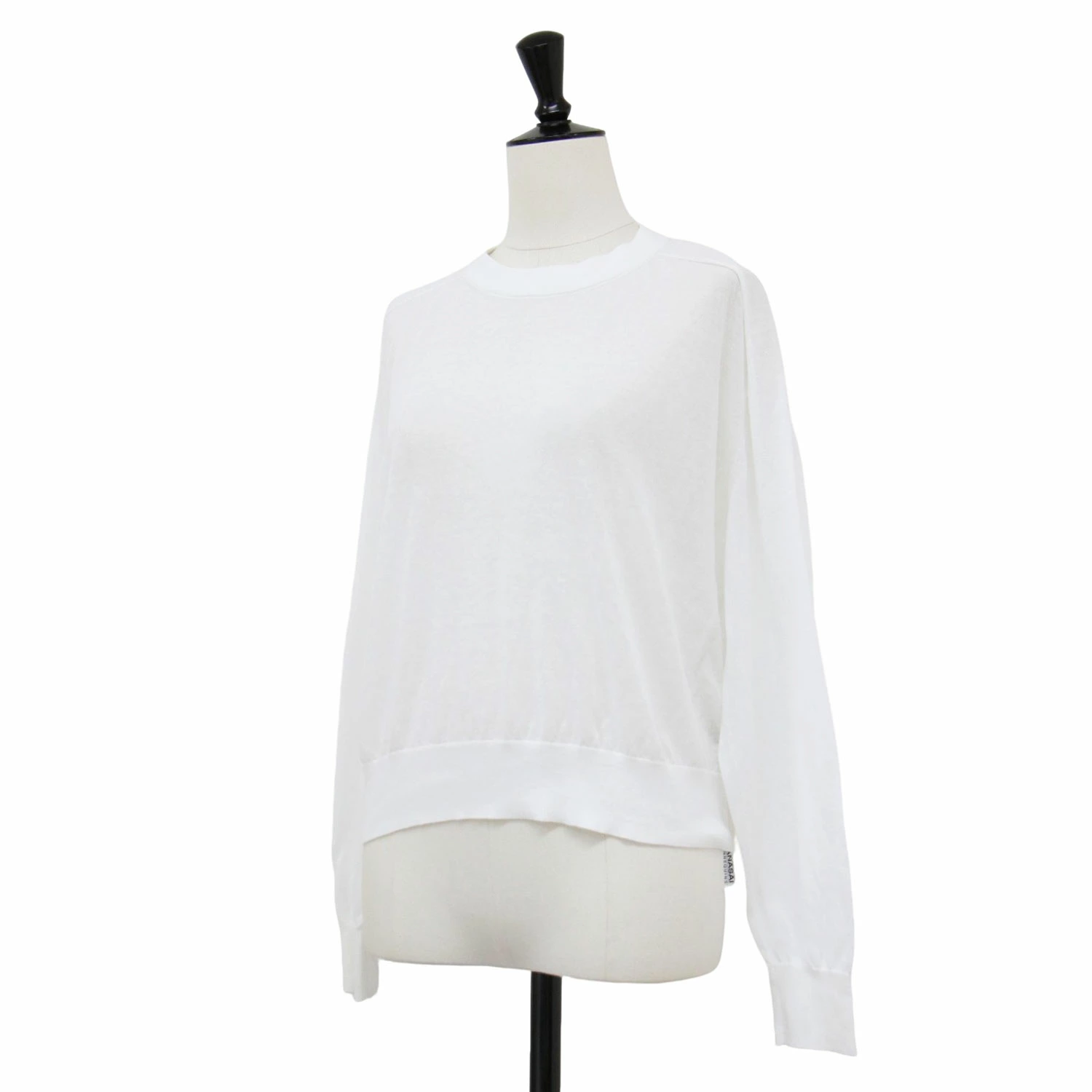 Theory Airy Cotton Cropped Knit Sweater, White, Size S (9), Sheer, Cropped Pullover, CN, PO J, Short, Crew Neck, Long Sleeves, Cotton, Women's, Pre-owned, K4618