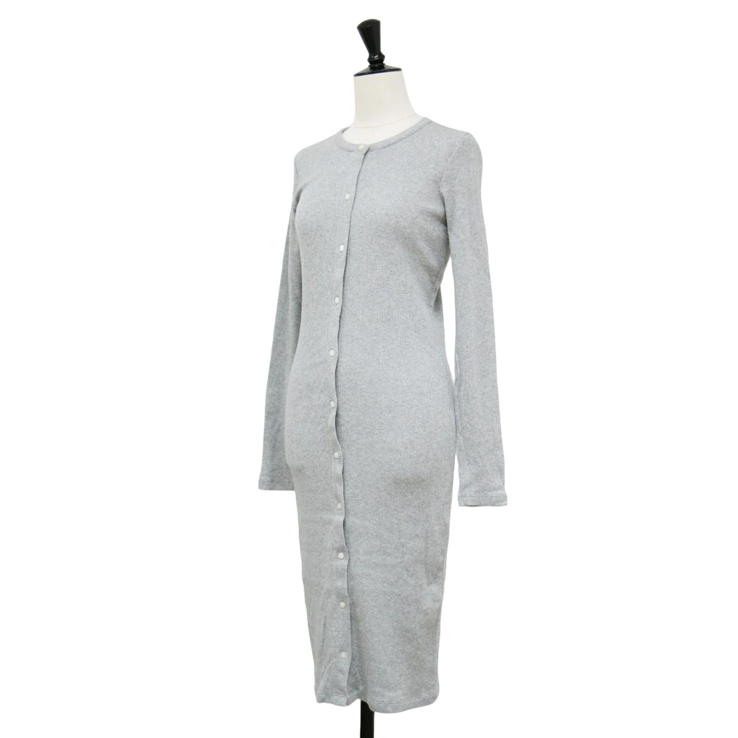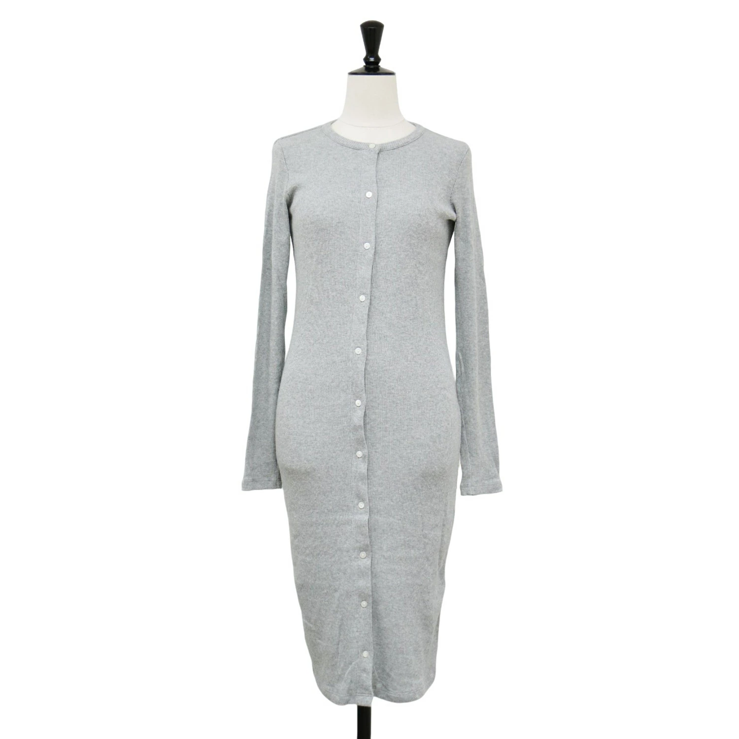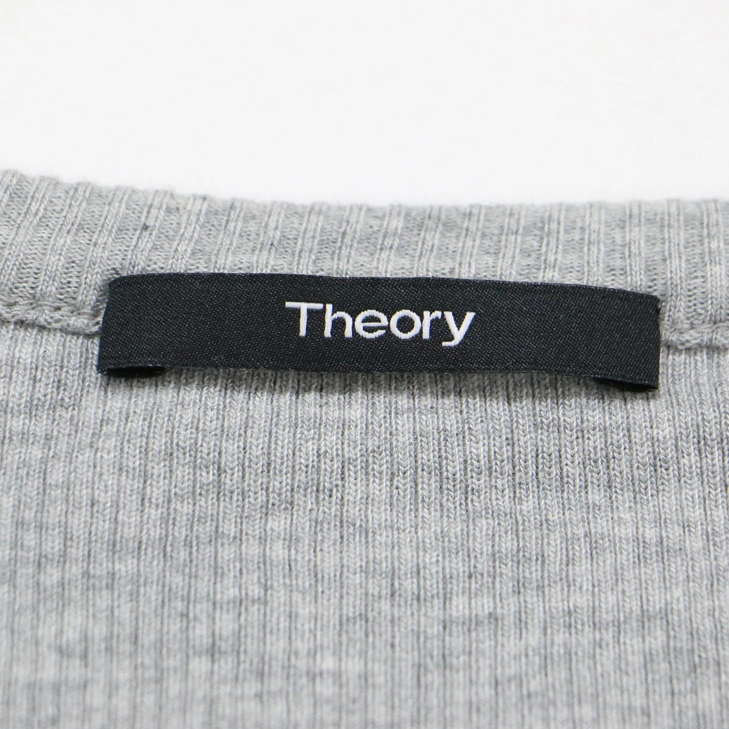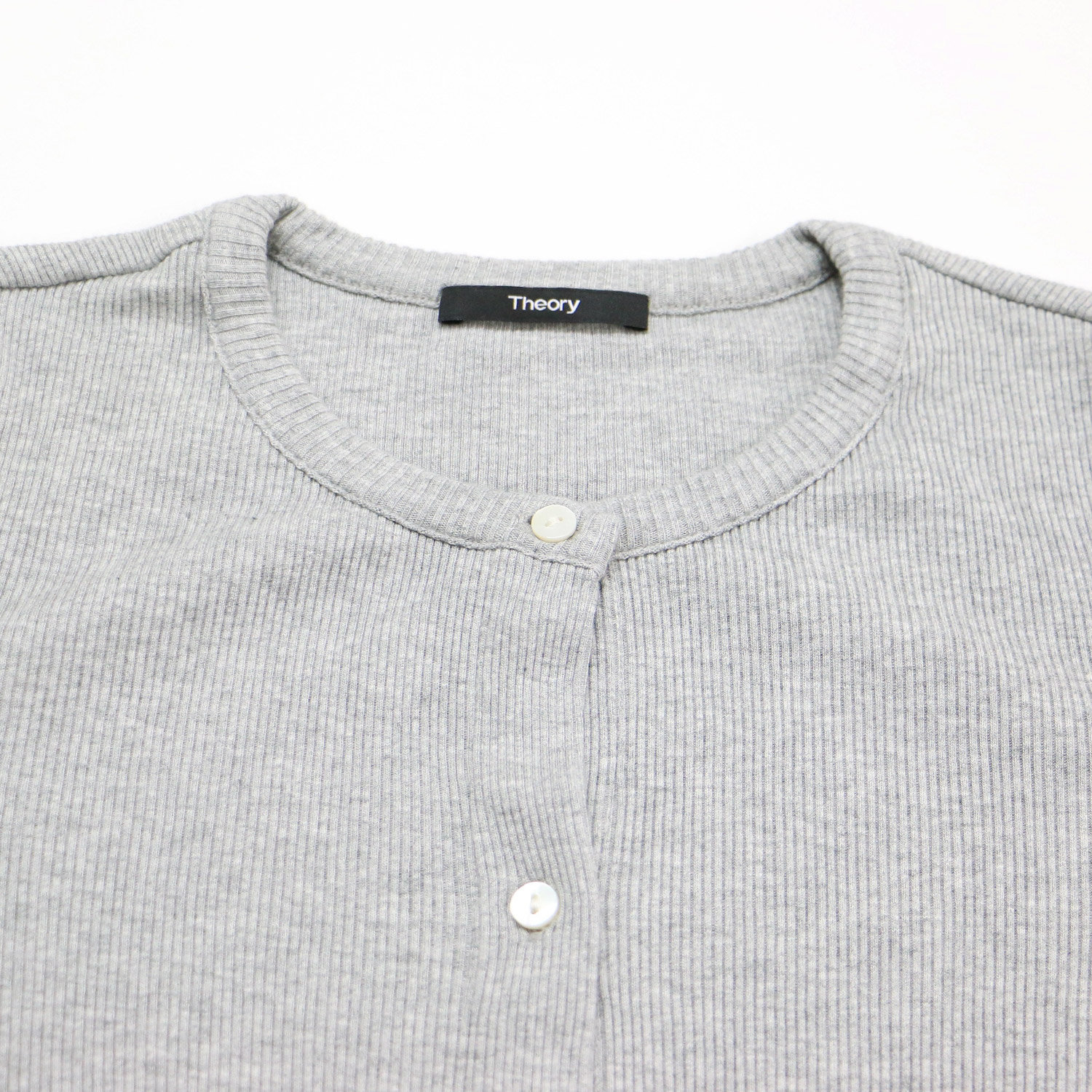 Theory Compact Rib Fitted Cardigan, Gray, Size 36 (Size 9) / Ribbed Long Cardigan / Knit, Long Sleeve, Crew Neck, Cotton, Rayon / Top, Jacket [Women's] [Pre-owned] [Excellent Condition] [K4618]