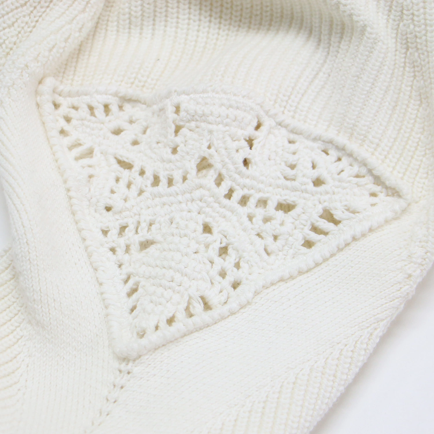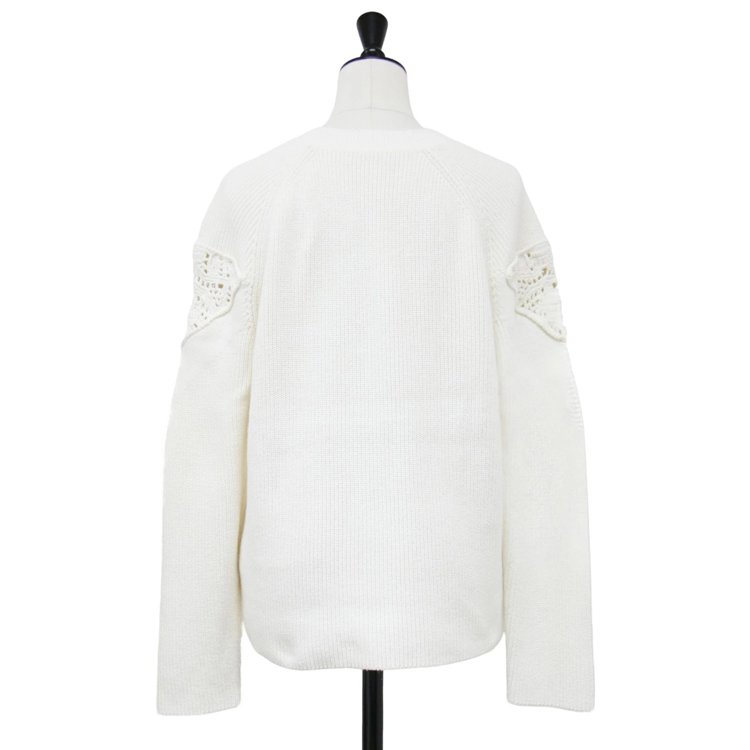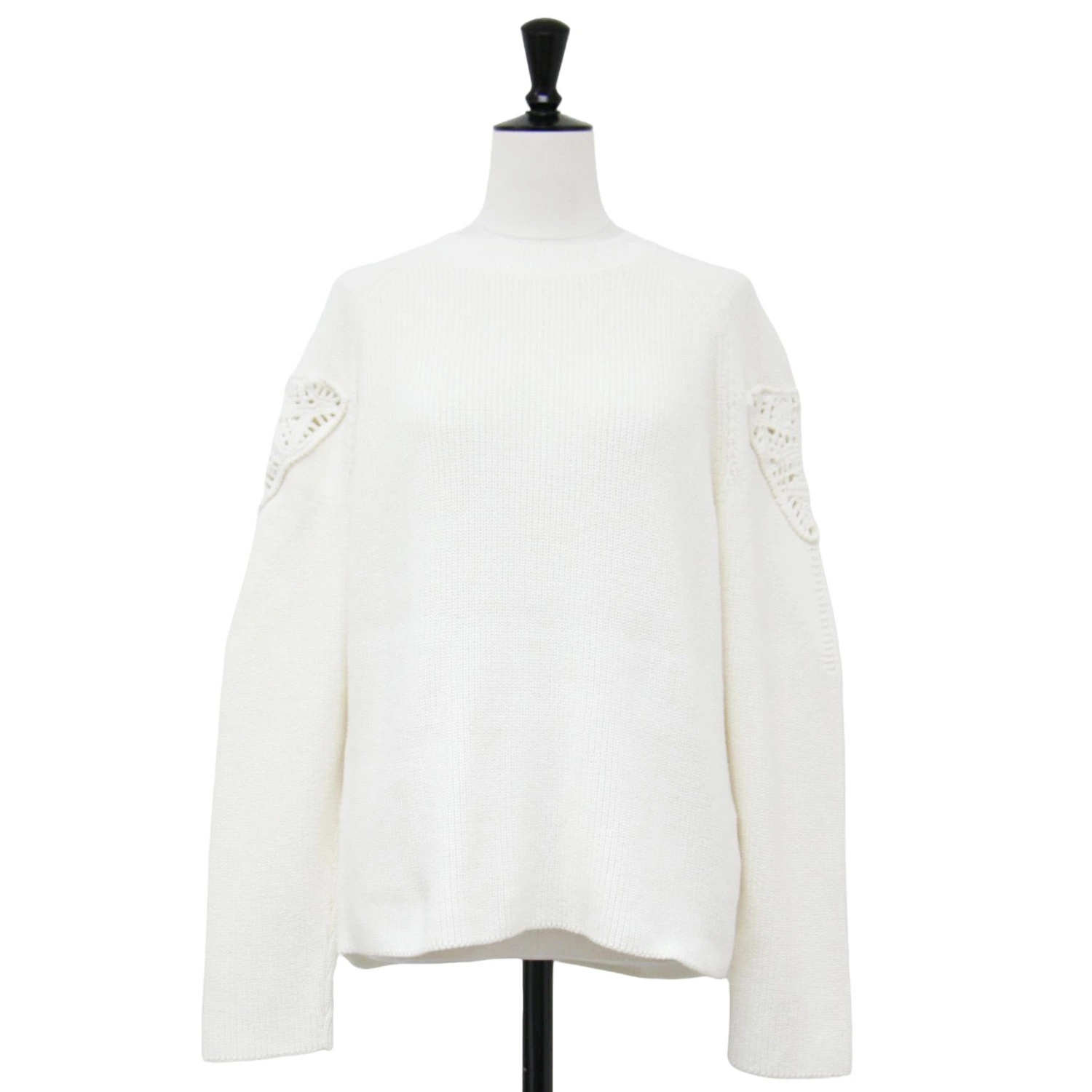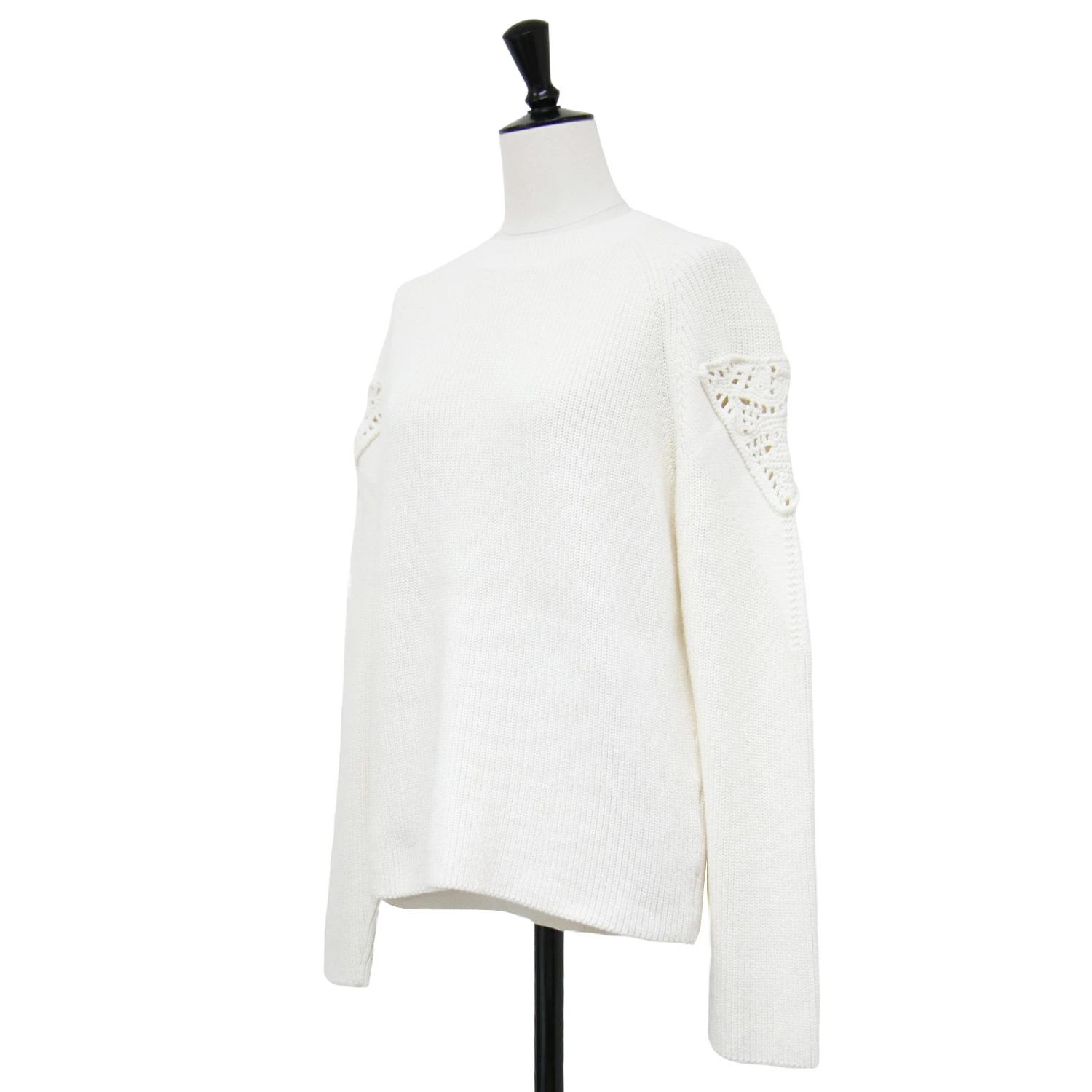 theory luxe white knit sweater, size 38 (M), Fall/Winter 2024, crocheted patchwork crew neck knit, Bonz Tylon pullover, long sleeves, cotton and wool, washable, women's, pre-owned, excellent condition, K4617