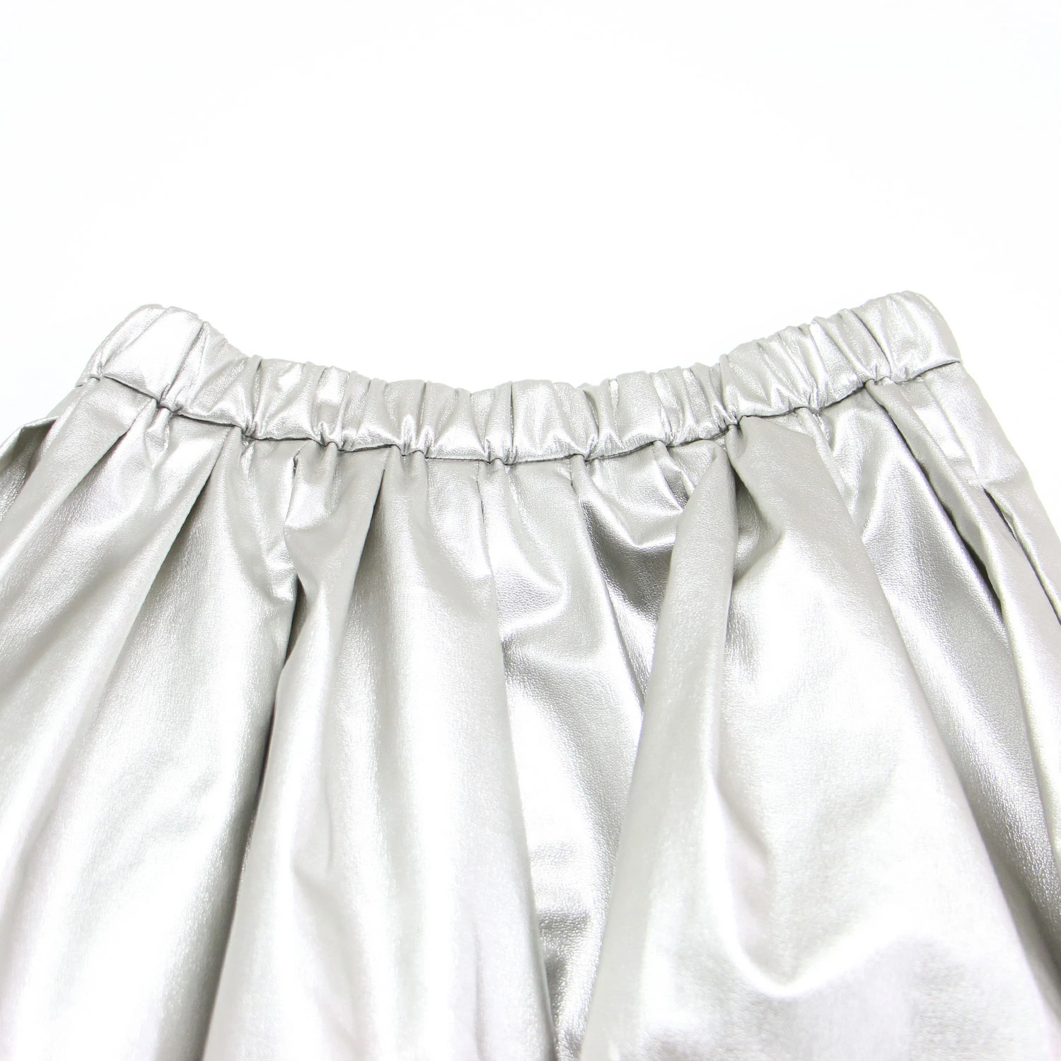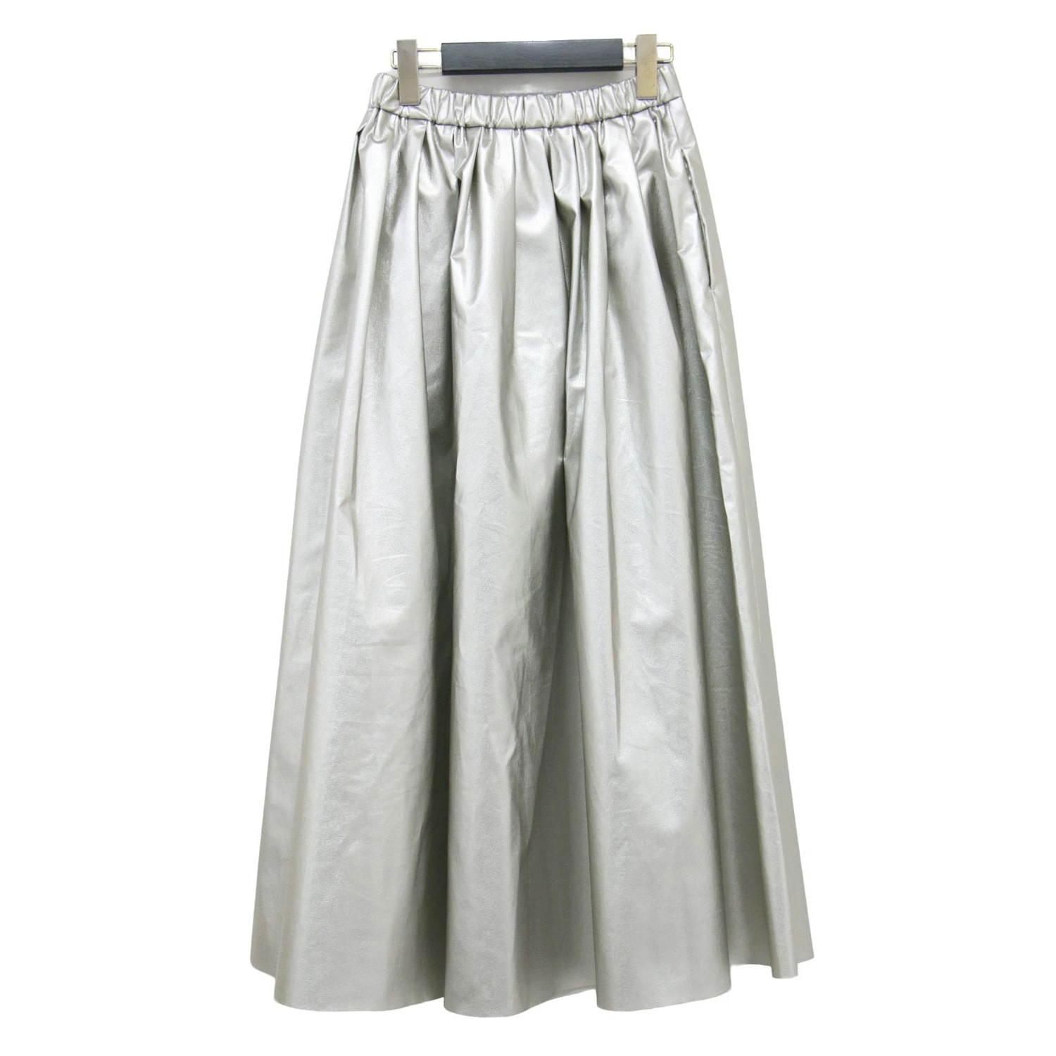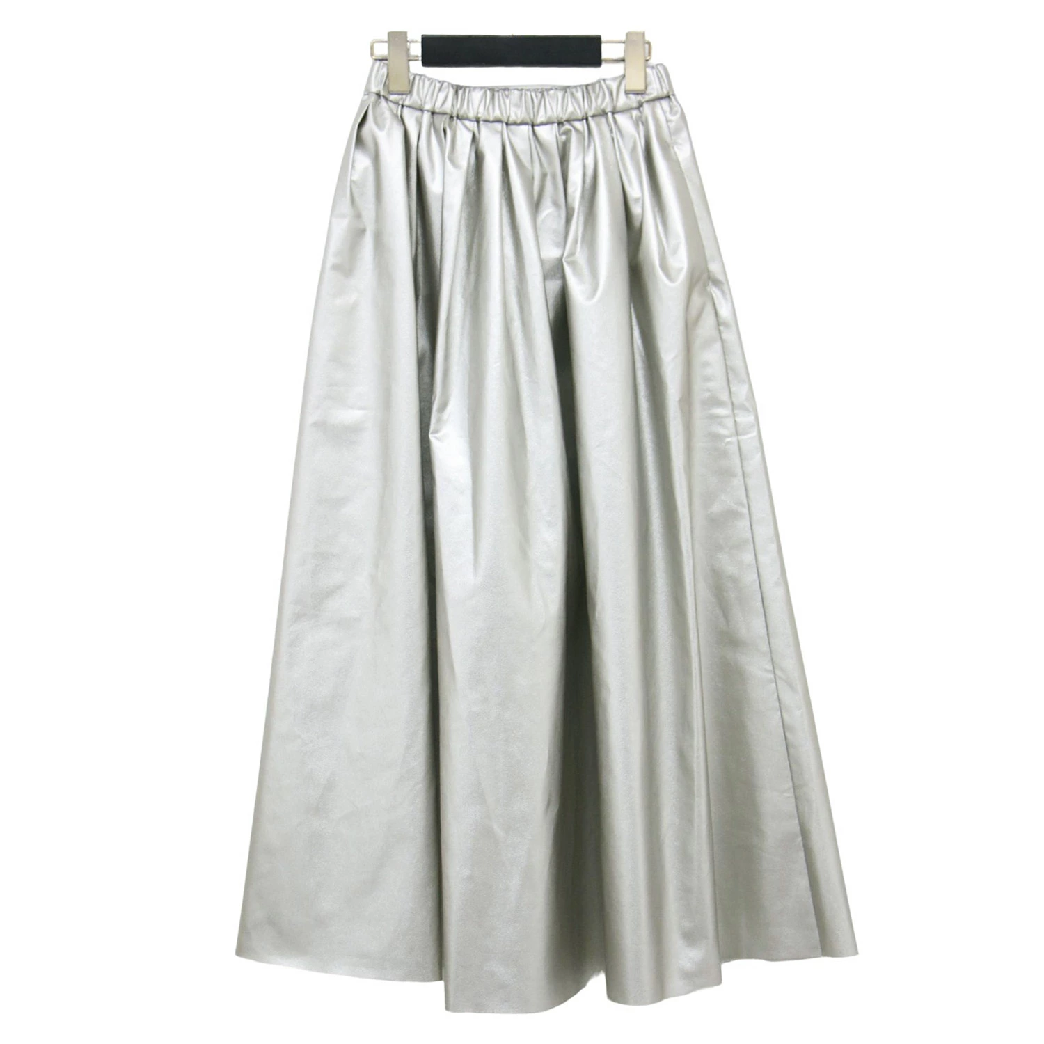THIRD MAGAZINE Skirt, Silver, Size 9 (M) | Shiny, Voluminous Skirt / Long, Gathered Faux Leather | Bottoms, Made in Japan [Women's] [Pre-owned] [Excellent Condition] [K4617]