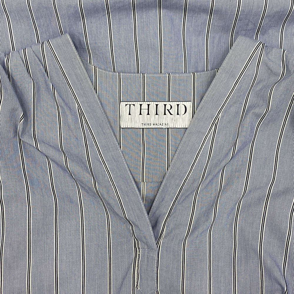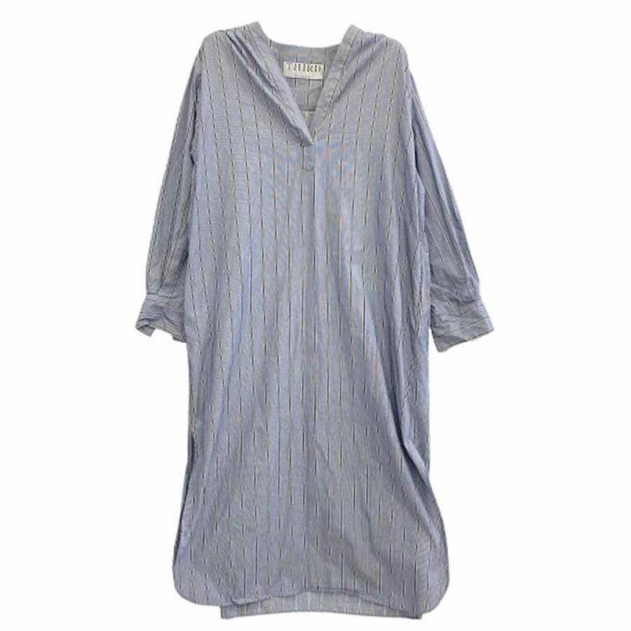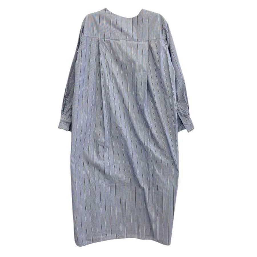 ブルー系【モデル】ストライプ ロング 長袖 ワンピース