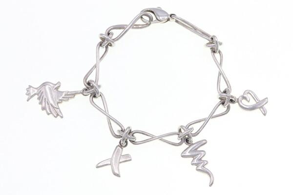 ティファニーブレスレットパロマピカソ4チャームSVスターリングシルバー925中古バングルアクセサリーチャームレディース鳩ハトキスラヴィングハートスクリブルTIFFANY&CO