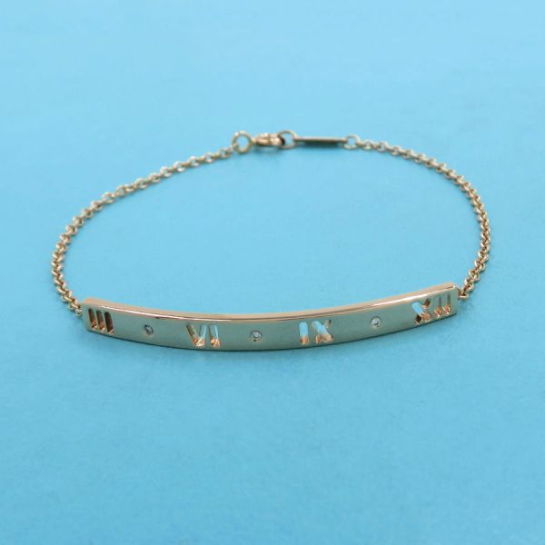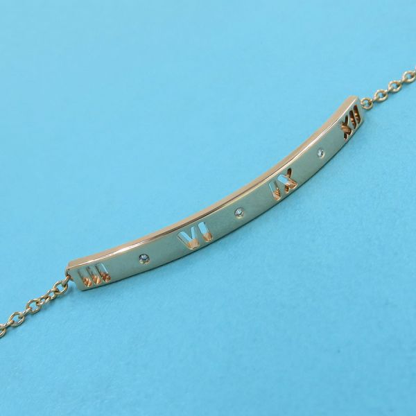 ティファニーより、アトラスブレスレット/ダイヤ3Pのご紹介です☆ニューヨークの5番街に掲げられた、神話上のモチーフを模した『アトラスクロック』の文字盤に記された、ローマ数字のデザインをモチーフにした大変人気の高いコレクションのブレスレット♪スッキリとしたバータイプのモチーフには緩やかにカーブがかかっておりますので、手首によく馴染みますね◎カジュアルに可愛らしく、女性人気の高いローズゴールド素材となっており普段使いからオススメです♪入荷の珍しい人気アイテムですので、是非お見逃しなく☆