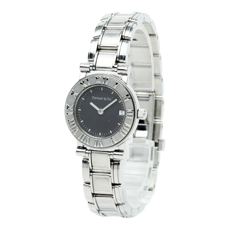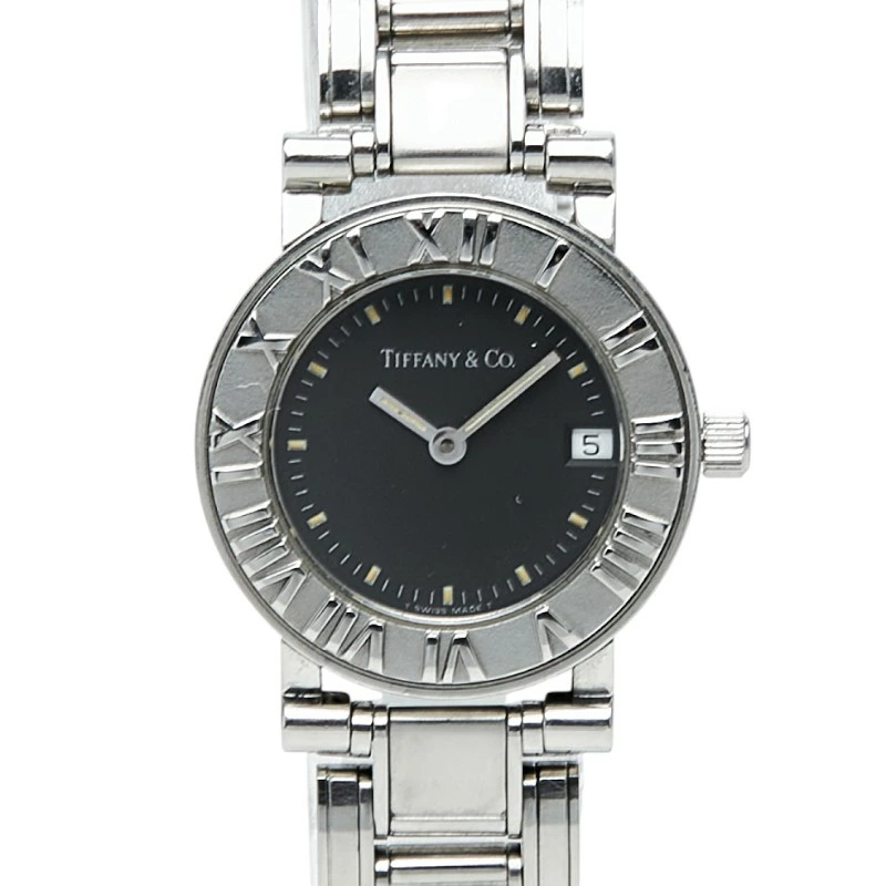 - ティファニー アトラス ウォッチ 腕時計 クオーツ ブラック文字盤 ステンレススチール レディース TIFFANY&Co. 【中古】