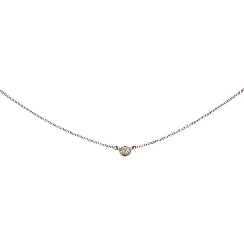 ティファニーを代表するデザイナー、エルサ・ペレッティによる永遠のアイコン「バイザヤード」コレクション。高品位のVVS1クラリティ、Gカラー、トリプルエクセレントのダイヤモンドがK18ピンクゴールドのチェーンに一粒セッティングされています。無駄を削ぎ落としたミニマルなデザインは、シーンを問わず胸元に上質な輝きを添える、タイムレスな逸品です。
