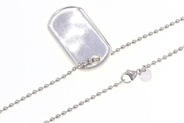 Tiffany & Co. Coin Edge Dog Tag Necklace in Sterling Silver (925) - Pre-owned Pendant with Ball Chain and ID Tag.