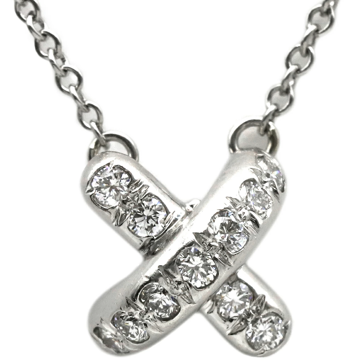 ティファニー Tiffany & Co ネックレス クロスステッチ ダイヤ クロスステッチ K18YG ダイヤモンド プラチナシルバー Au750 WG - レディース定番 人気 美品 【中古】