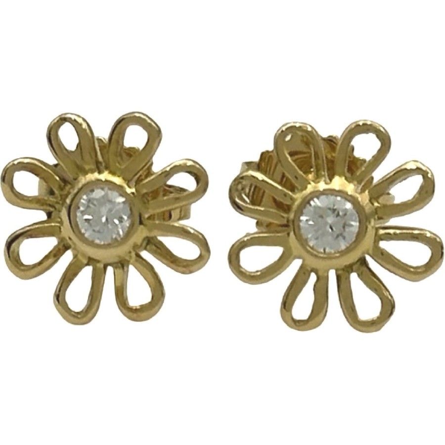 Tiffany & Co. Daisy Earrings, Gold 750, Diamond, Used Jewelry