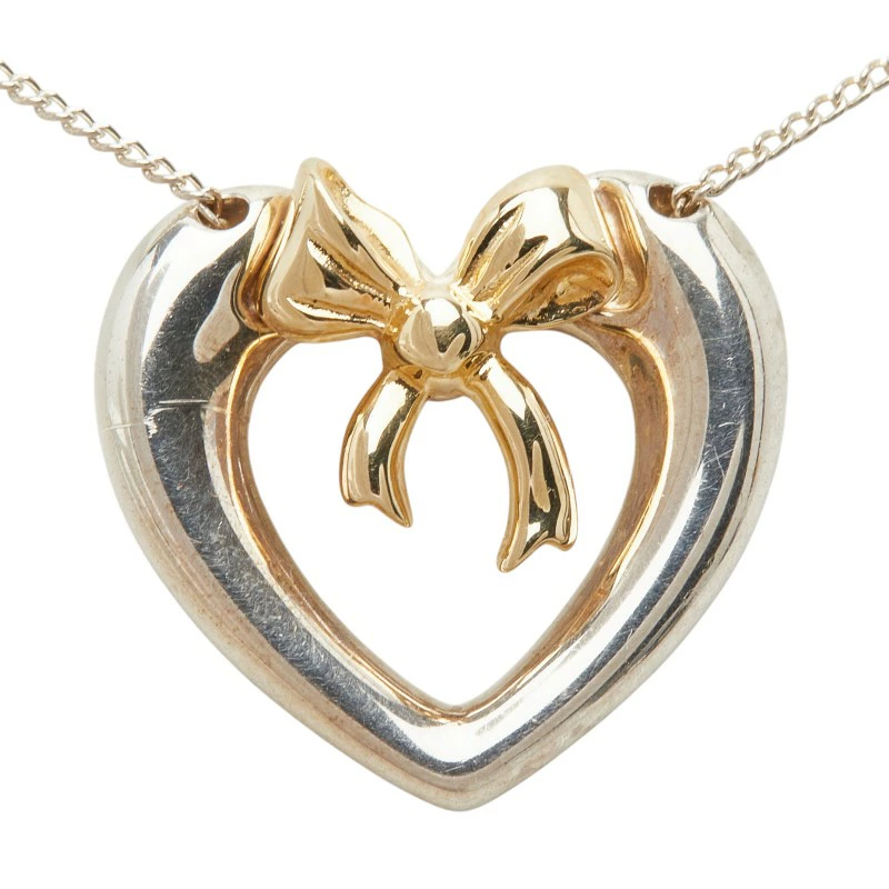 - ティファニー ハートリボン ネックレス SV925 シルバー K18YG イエローゴールド レディース TIFFANY&Co. 【中古】