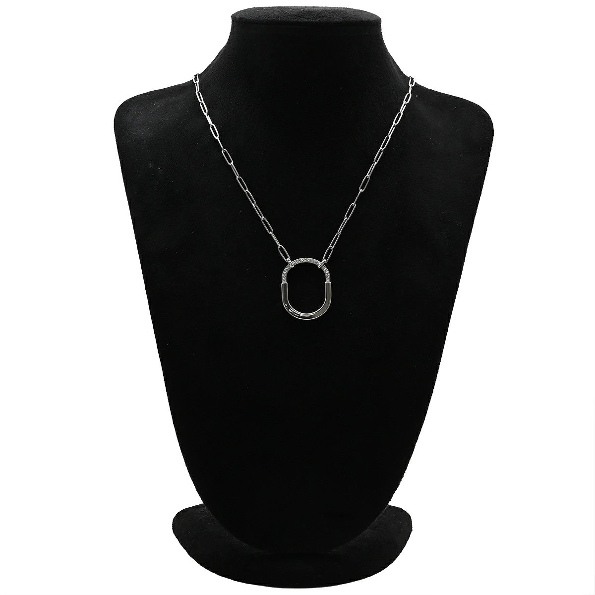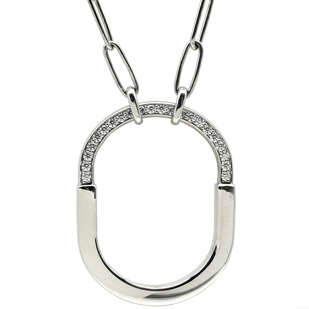 ティファニー Tiffany & Co ネックレス ロック ペンダント ロック K18WG ダイヤモンド ホワイトゴールド T&Co. Au750 18K ダイヤ オーバル型 チェーン - レディース 【中古】